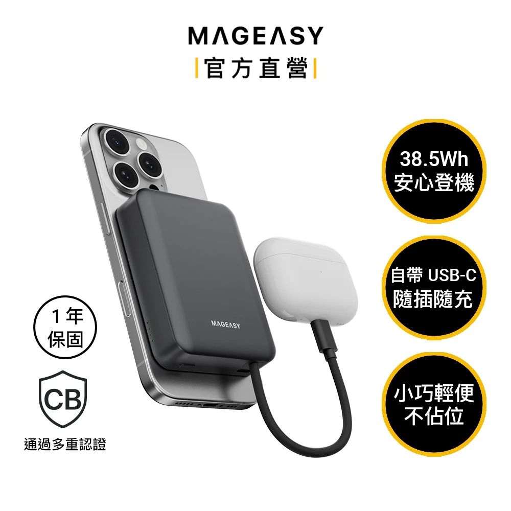 MAGEASY MagPower 二合一磁吸行動電源 (一年保固) 10000mAh USB-C 快充 充電寶太空灰Powerbanks & BatteriesMAGEASY 官方旗艦館
