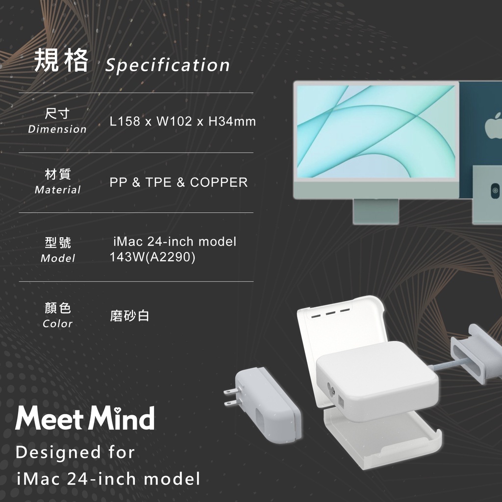 特價福利品 Meet Mind 台灣專利 for iMac 24-inch 原廠充電器線材收納保護殼 143W特價福利品 Meet Mind 台灣專利 for iMac 24-inch 原廠充電器線材收納保護殼 143WCables, Chargers & ConvertersMeet Mind 品牌旗艦館