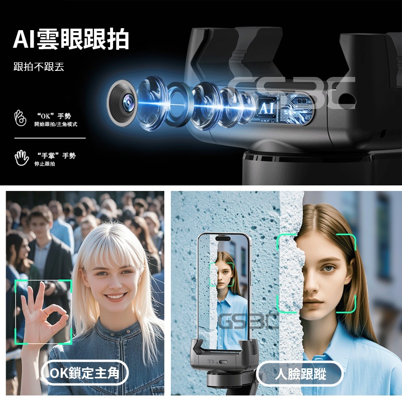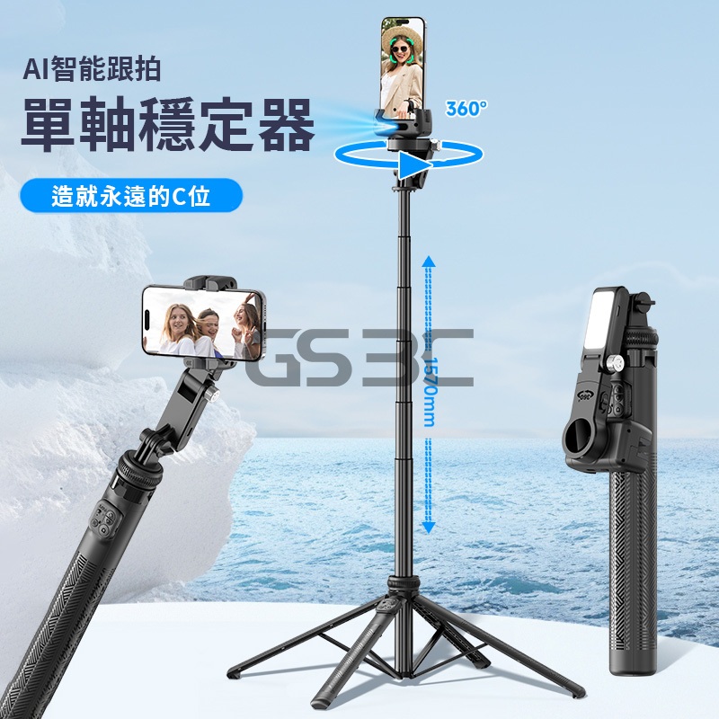 C16R AI 人臉追蹤 智能跟拍神器 單軸穩定器 四腳架 超穩固 直播 必備 藍牙 自拍桿 手機腳架 美顏 美肌 防抖C16R-黑色Selfie AccessoriesGS 3C 手機平板配件選品店