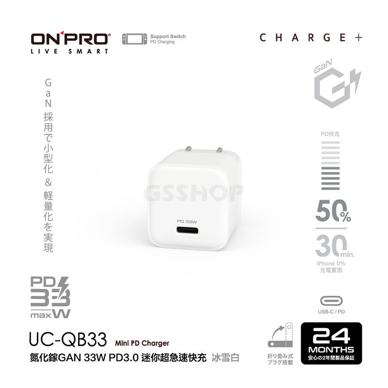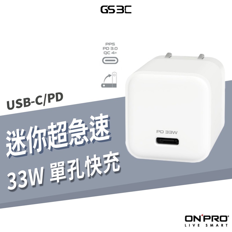 ONPRO UC-QB33 PD GaN 33W Type-C 迷你 單孔 充電器 充電頭 豆腐頭 快充 閃充 摺疊插腳33W單孔白色Cables, Chargers & ConvertersGS 3C 手機平板配件選品店