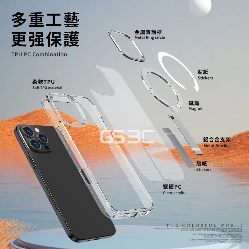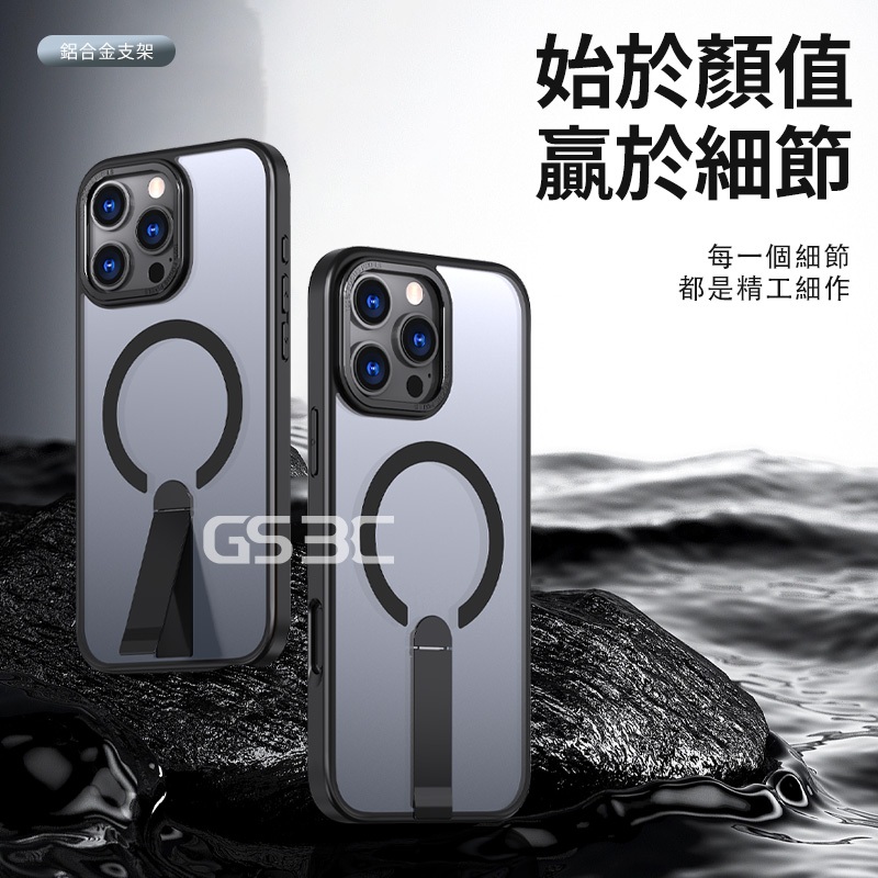 • 磁吸 隱形 支架 防摔殼 iPhone 16/15/14/13 Pro Max 霧面 透明 保護套 保護殼 手機殼 背蓋