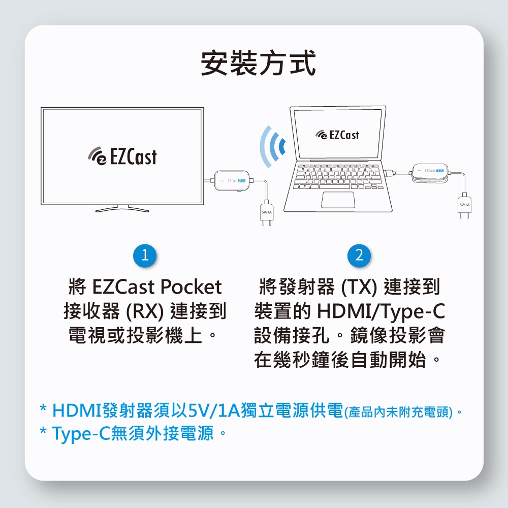 EZCast Pocket 無線投影傳輸套組 HDMI/TypeC雙版本可選 支援Disney+, Netflix2發1收(1080P)|HDMI套組(1080P)|Type-C套組(1080P)|HDMI套組(4K)|Type-C套組(4K)Casting DevicesGlorykylin 耀麟國際官方旗艦店