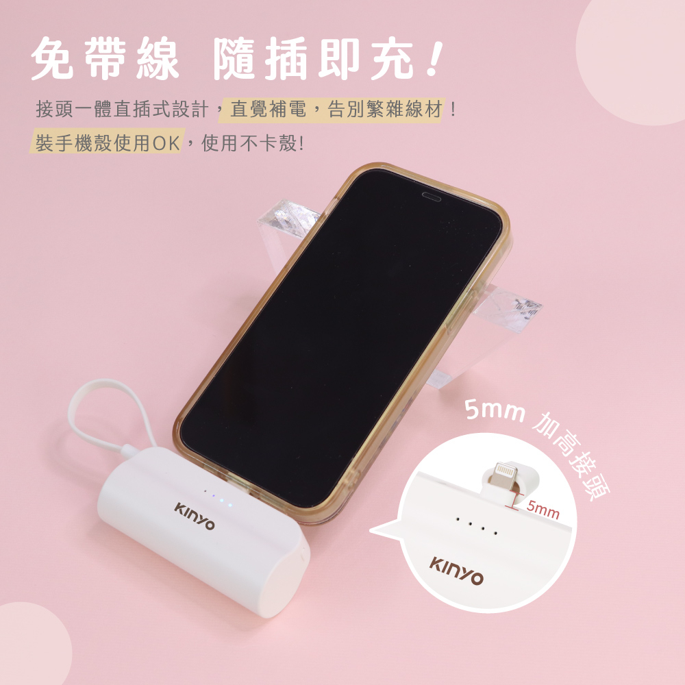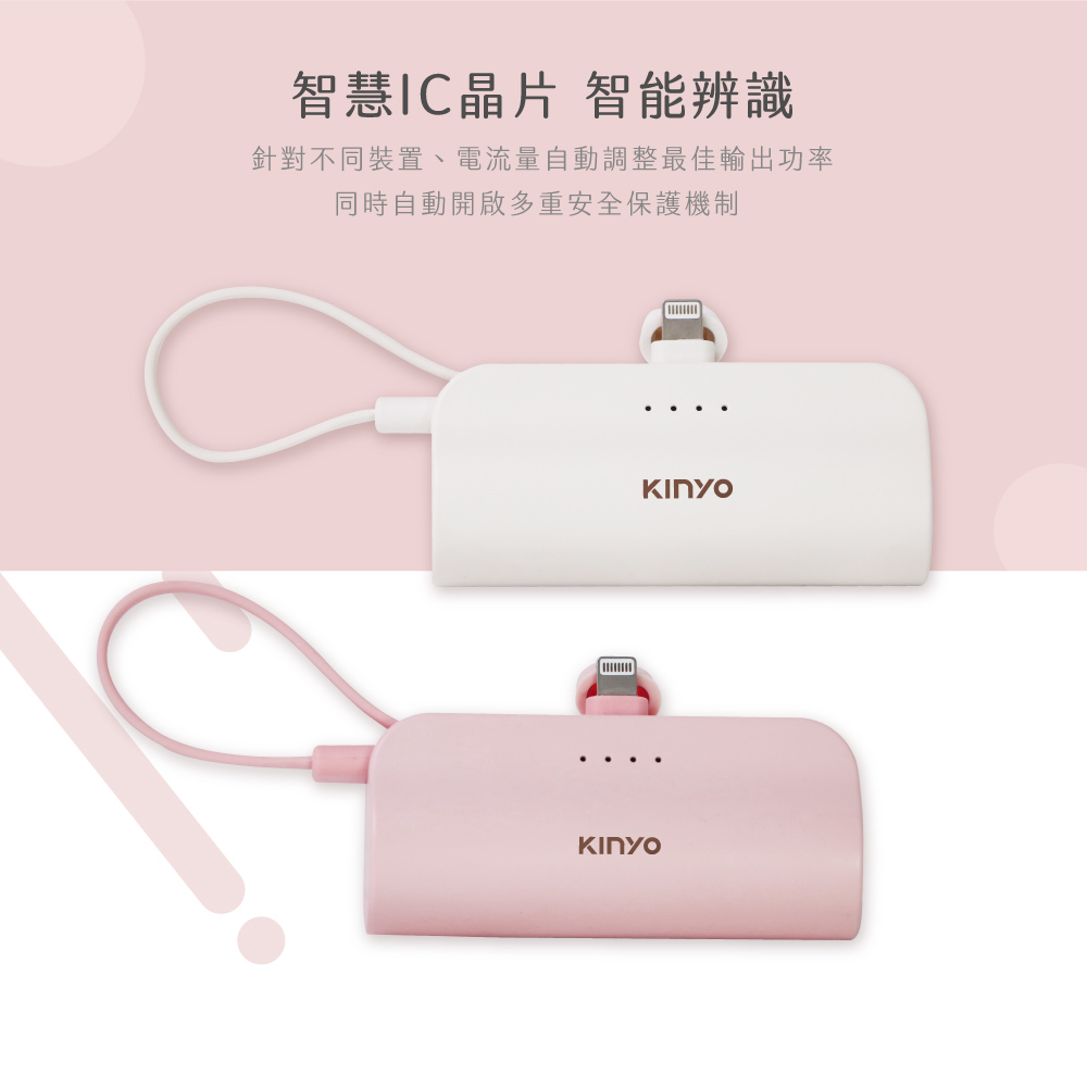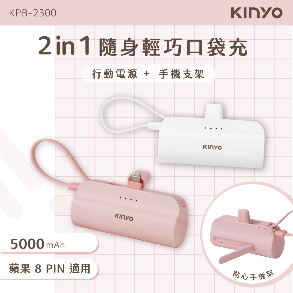 【KINYO】5000mAh 隨身輕巧口袋充 蘋果8PIN (KPB) 行動電源 行充 充電寶 自帶線 手機架 BSMIKPB2300PI 粉色|KPB2300W 白色Powerbanks & BatteriesKINYO官方旗艦店_家電館