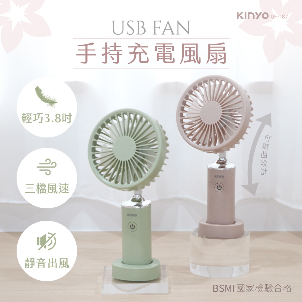 〖KINYO〗 3.8吋手持充電風扇 (UF) USB風扇 手持扇 三檔風速 夏天必備 旅遊小風扇 外出風扇 隨身風扇UF187G 春芽綠|UF187PI 藕粉色USB & Mobile FansKINYO官方旗艦店_家電館