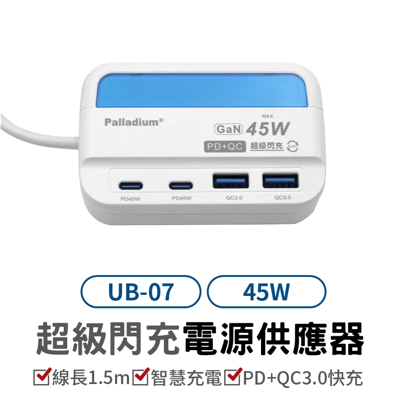 Palladium 45W USB超級閃充電源供應器 UB-07 電源供應器 快充頭 充電器 PD充電孔 USB充電孔Palladium 45W USB超級閃充電源供應器 UB-07 電源供應器 快充頭 充電器 PD充電孔 USB充電孔Cables, Chargers & ConvertersLarmi 樂米 台灣直營店