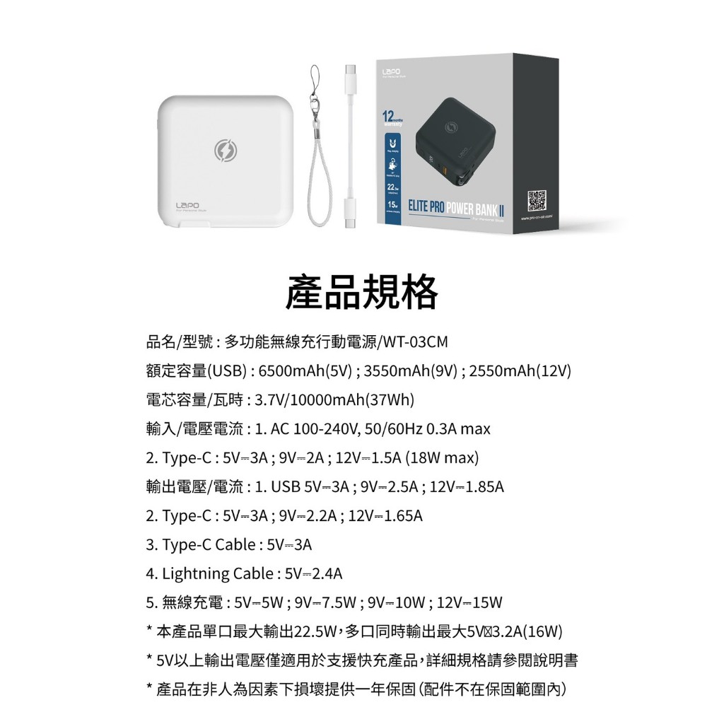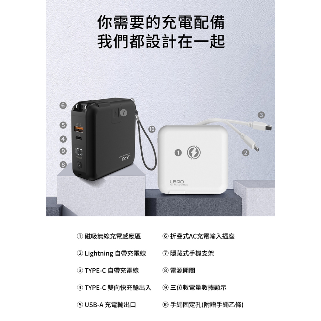【LaPO】原廠商城 多功能無線充行動電源(WT-03CM/37Wh) 二代 多合一 全方位 快充 磁吸 自帶線抹茶綠(售完不補)|迷霧灰|牛仔藍(售完不補)|珊瑚粉|布雷克白|夜幕黑|曙光白|奶茶|海芋紫|進擊的巨人聯名款(售完不補)Powerbanks & BatteriesLaPO 品牌旗艦店
