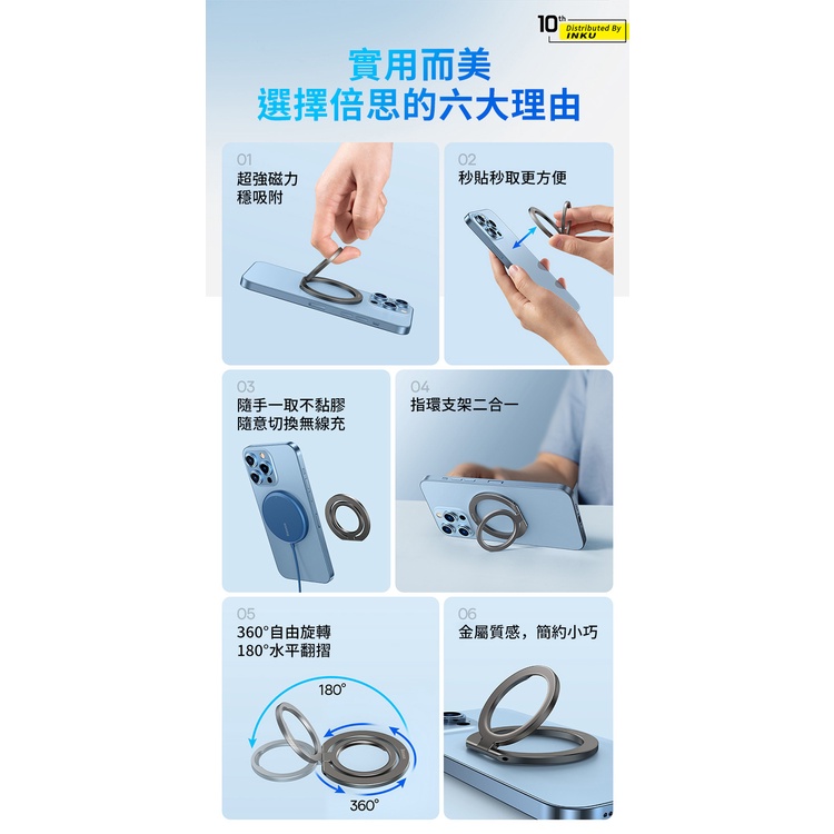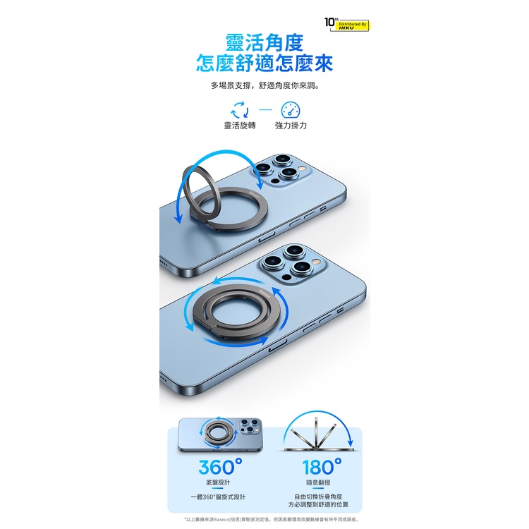 倍思 磁環 金屬 磁吸 折疊 指環支架 手機支架 桌用 手持 多角度 旋轉 手機架 追劇 辦公 遠距 車用 單手 耐用深空灰|銀色Phone Gripsibits手機配件 官方旗艦館