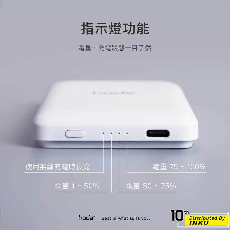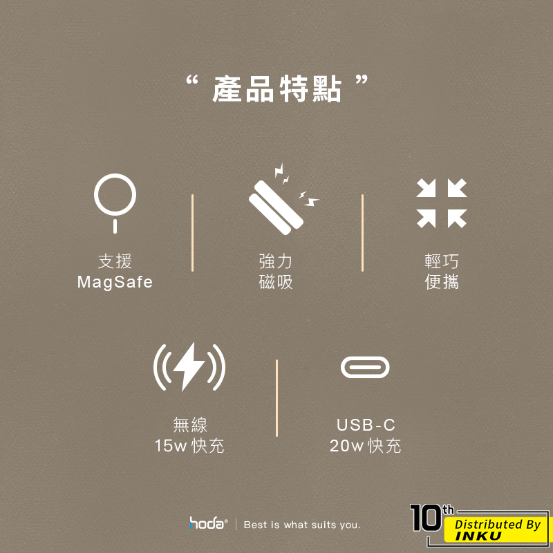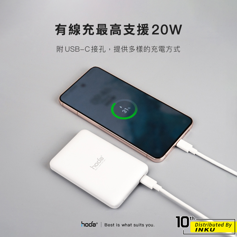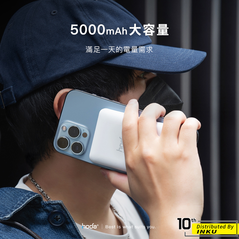 hoda 5000mAh 磁吸式行動電源 Magsafe 輕巧 便攜 無線充電 15W TypeC 出差 旅行 行動充黑色|白色Powerbanks & Batteriesibits手機配件 官方旗艦館