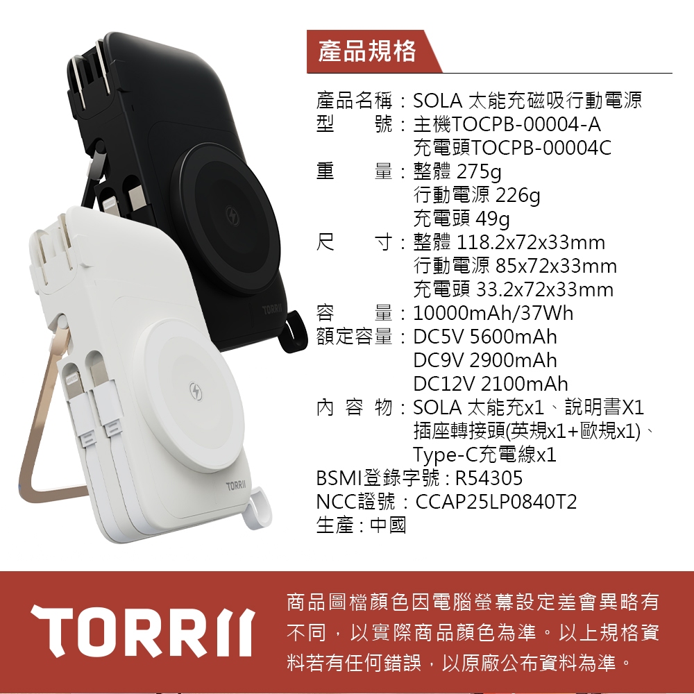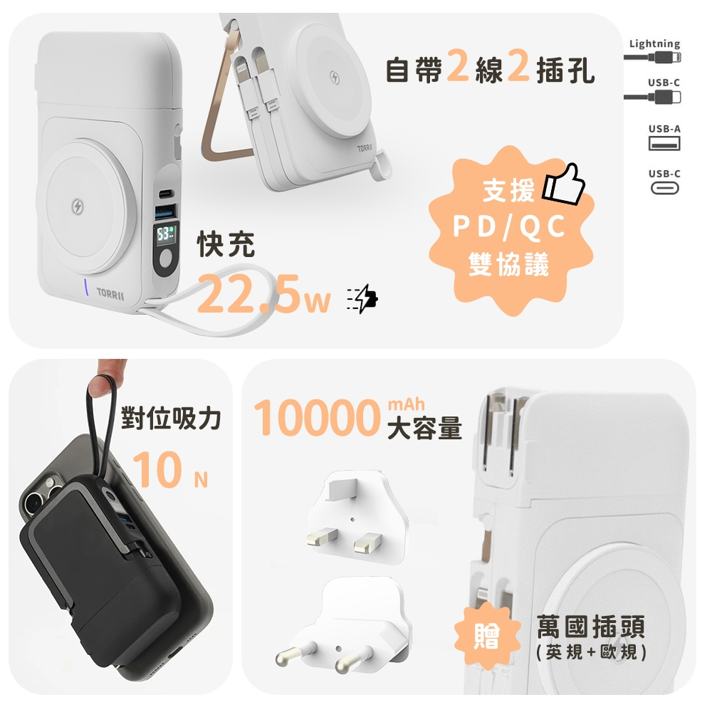 【TORRII】SOLA太能充磁吸行動電源 (贈萬國轉接插頭)黑色|白色Powerbanks & Batteriesi2store官方生活旗艦店