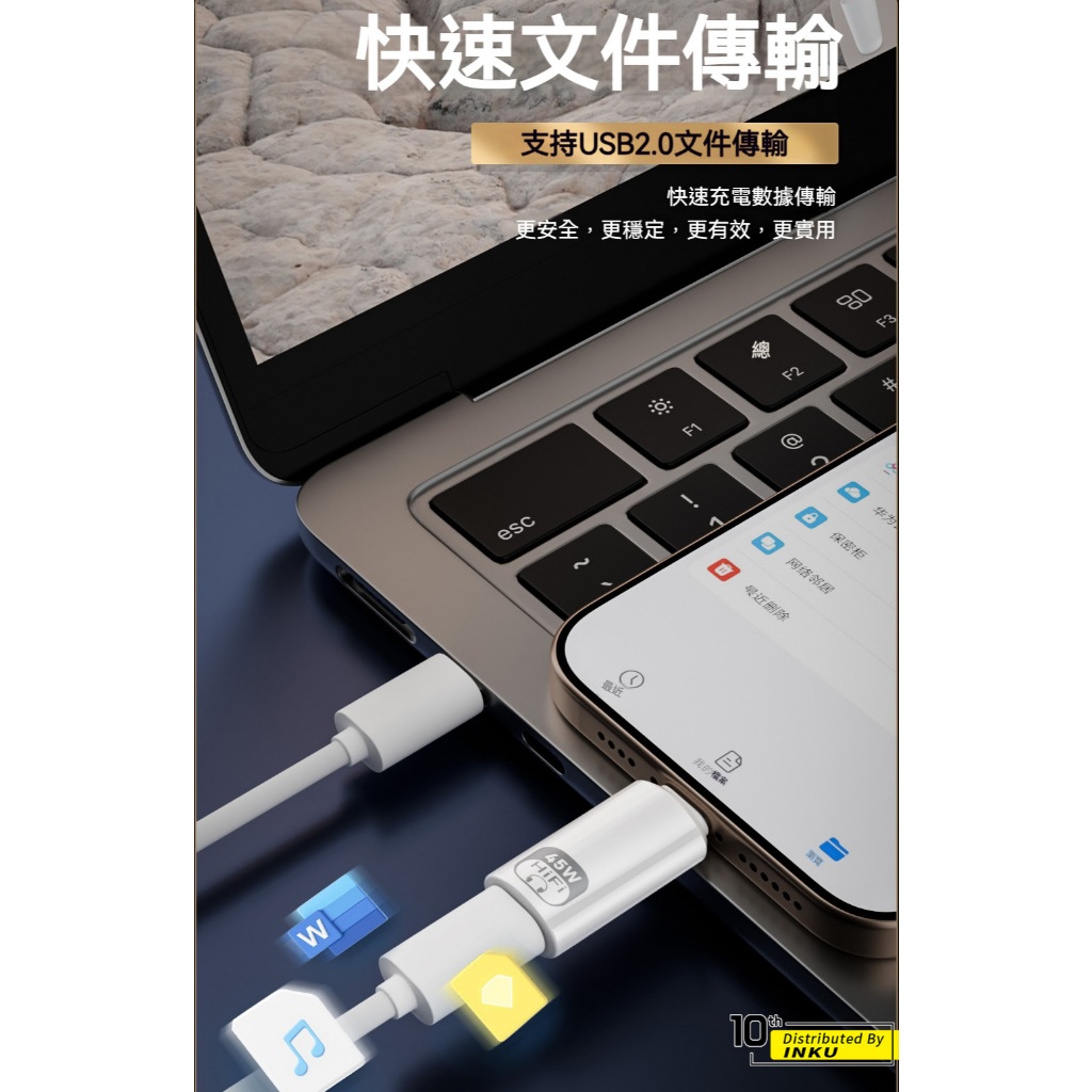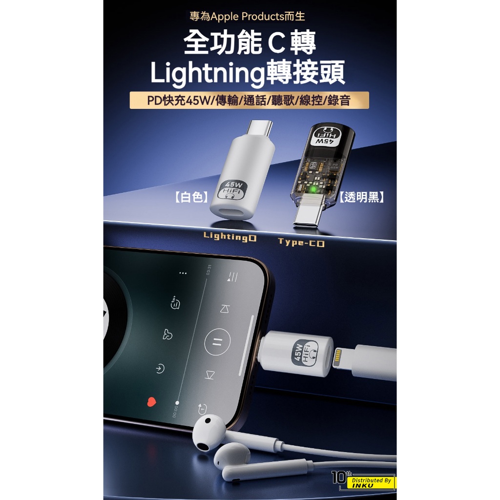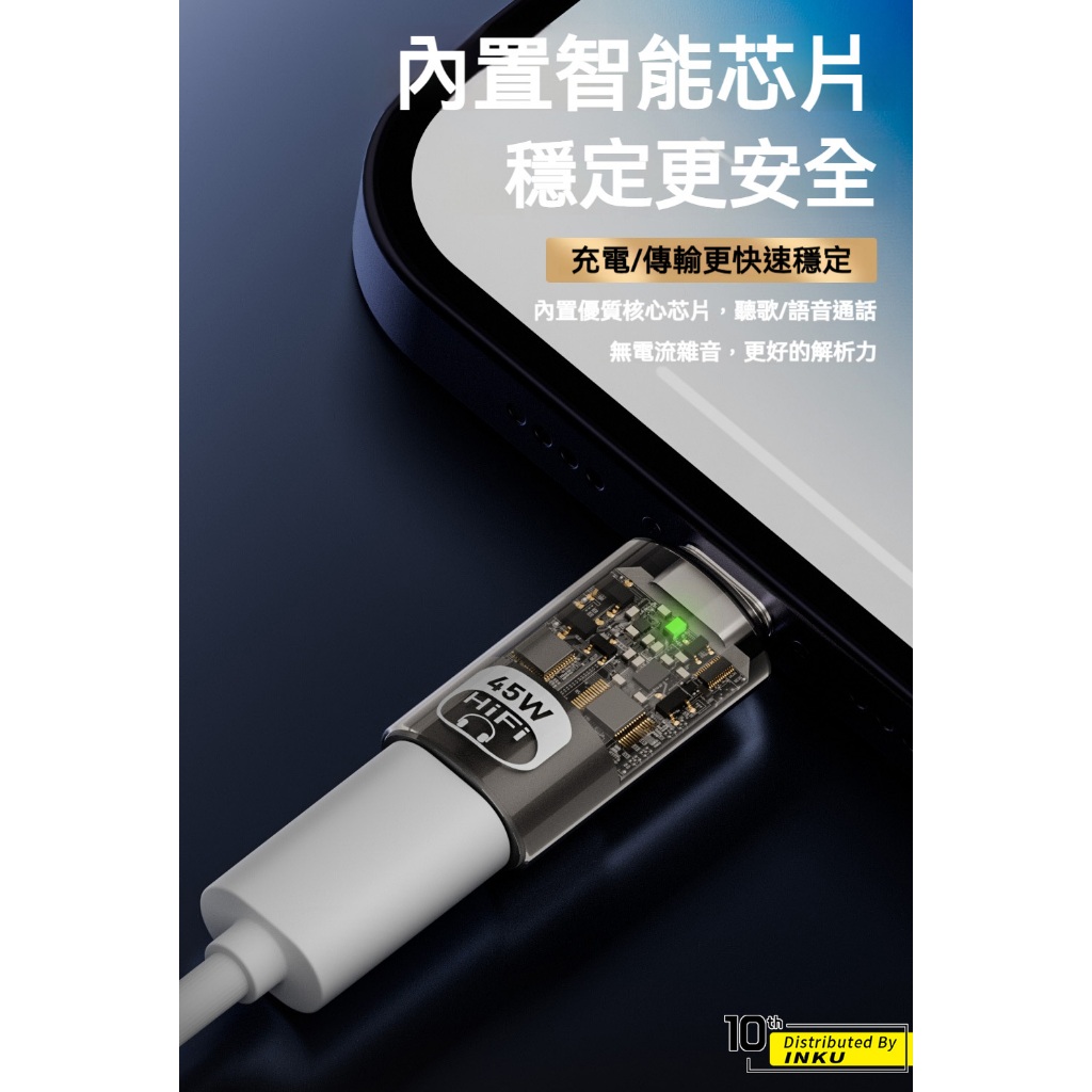 ibits MDD Lightning轉Type-C耳機轉接頭 45W快充 支援通話/數據 蘋果15/16適用透明黑|白色Cables, Chargers & Convertersibits手機配件 官方旗艦館