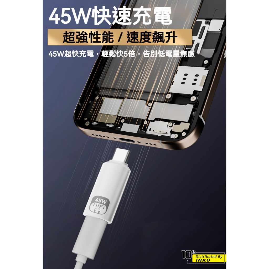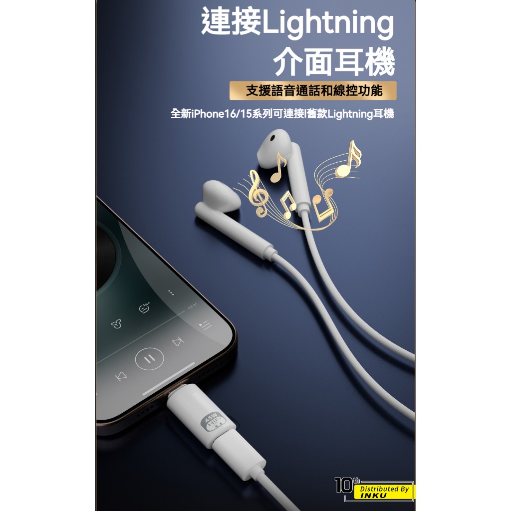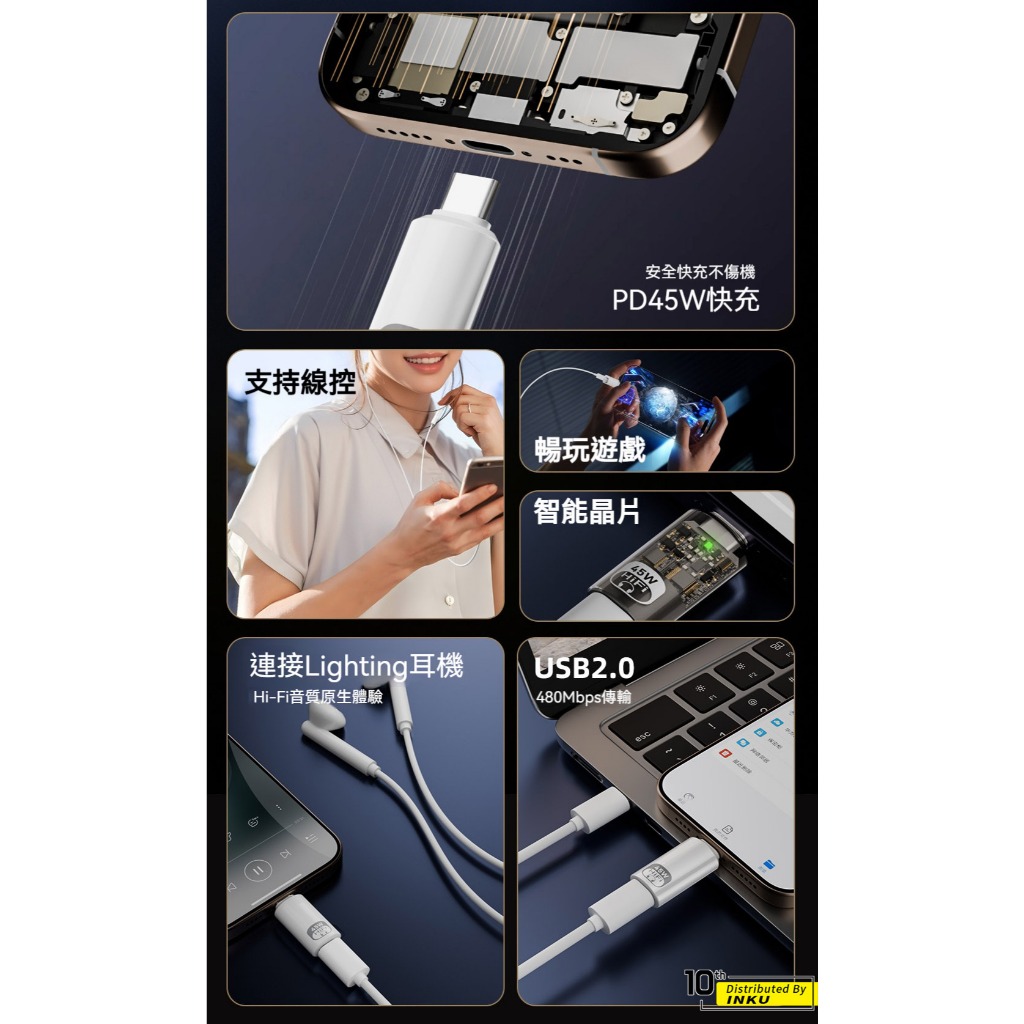 ibits MDD Lightning轉Type-C耳機轉接頭 45W快充 支援通話/數據 蘋果15/16適用透明黑|白色Cables, Chargers & Convertersibits手機配件 官方旗艦館