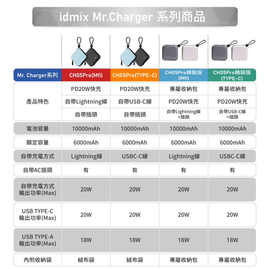 idmix MR CHARGER 10000 MFI / Android 行動電源(CH05 PRO)精裝版莫蘭迪灰(蘋果版)|珍珠白(蘋果版)|莫蘭迪灰(安卓版)(蘋果i15)|珍珠白(安卓版)(蘋果i15)Powerbanks & BatteriesIBOOMING時尚精品配件