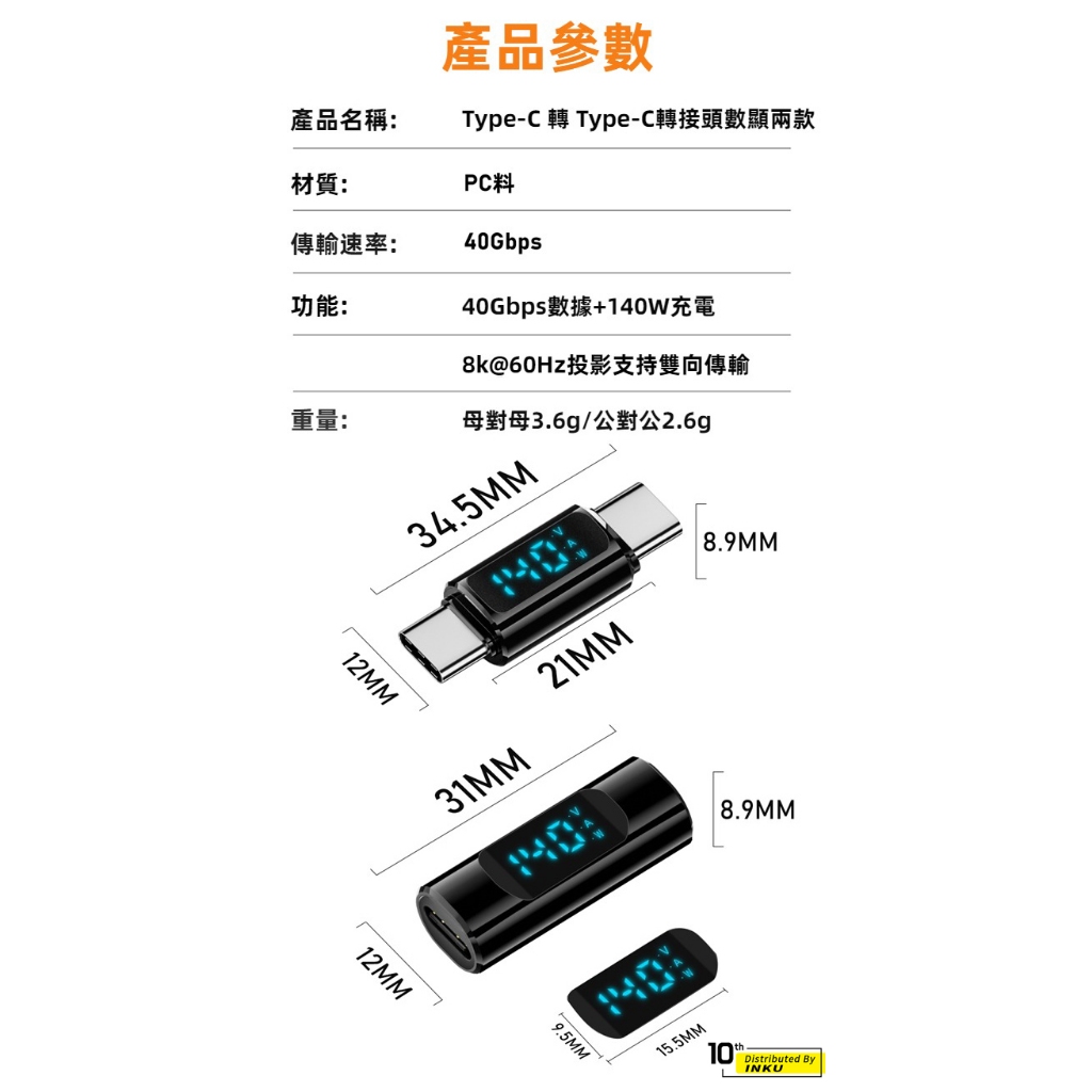 ibits MDD USB4 Type-C數顯轉接頭 140W C公轉C公 C母轉C母 轉換器 雙向傳輸C公轉C公140W 黑色|C母轉C母140W 黑色|C公轉C公140W 淺黑|C母轉C母140W 淺黑Cables, Chargers & Convertersibits手機配件 官方旗艦館