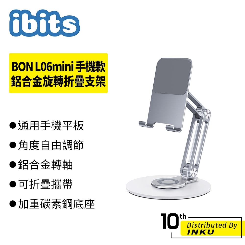 ibits BON L06mini 手機款鋁合金旋轉折疊支架 懶人支架 桌面支架 手機平板支架 網課 直播支架 360度灰色|銀色Selfie Accessoriesibits手機配件 官方旗艦館