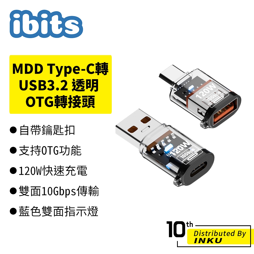 ibits MDD Type-C轉USB3.2 OTG轉接頭 透明殼設計 120W快充 10Gbps傳輸A公轉C母(透明)|A公轉C母(透明黑)|A公轉C母(透明藍)|A公轉C母(透明黃)|C公轉A母(透明)|C公轉A母(透明黑)|C公轉A母(透明藍)|C公轉A母(透明黃)Cables, Chargers & Convertersibits手機配件 官方旗艦館