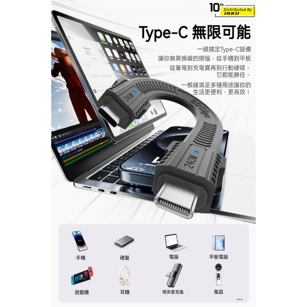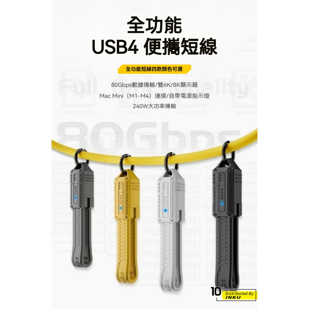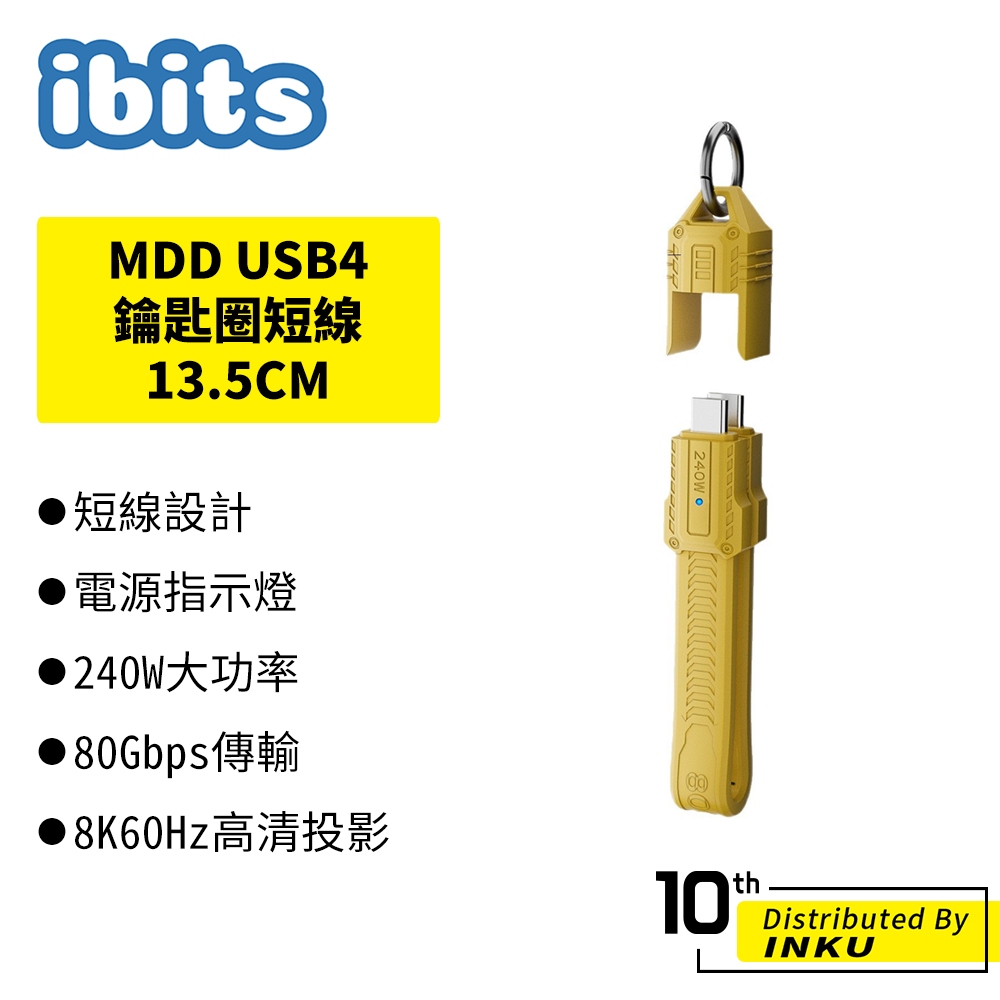 ibits MDD USB4 鑰匙圈短線 PD240W 快充 80Gbps傳輸 Type-C軟板線 13.5CM黑色|白色|灰色|黃色Cables, Chargers & Convertersibits手機配件 官方旗艦館