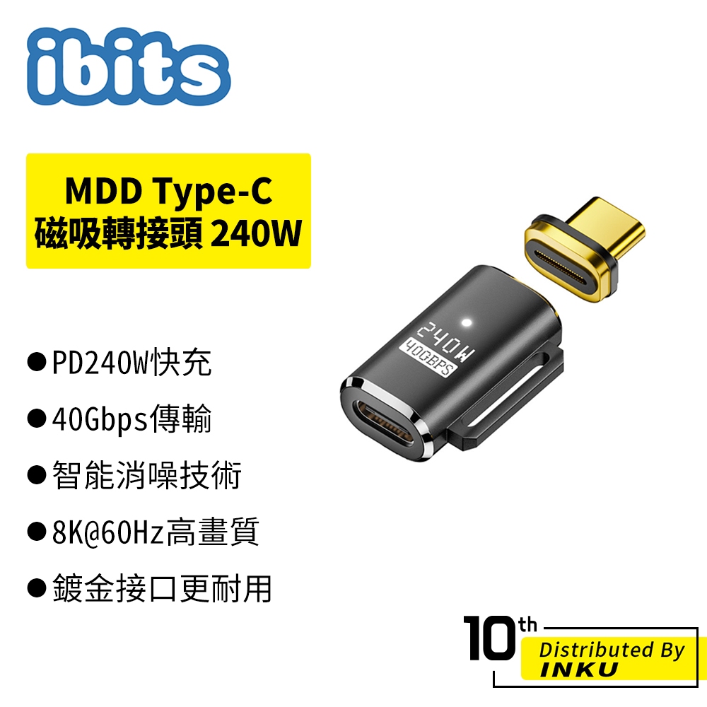 ibits MDD Type-C USB4.0 磁吸轉接頭 240W快充 40Gbps傳輸 適用雷電3