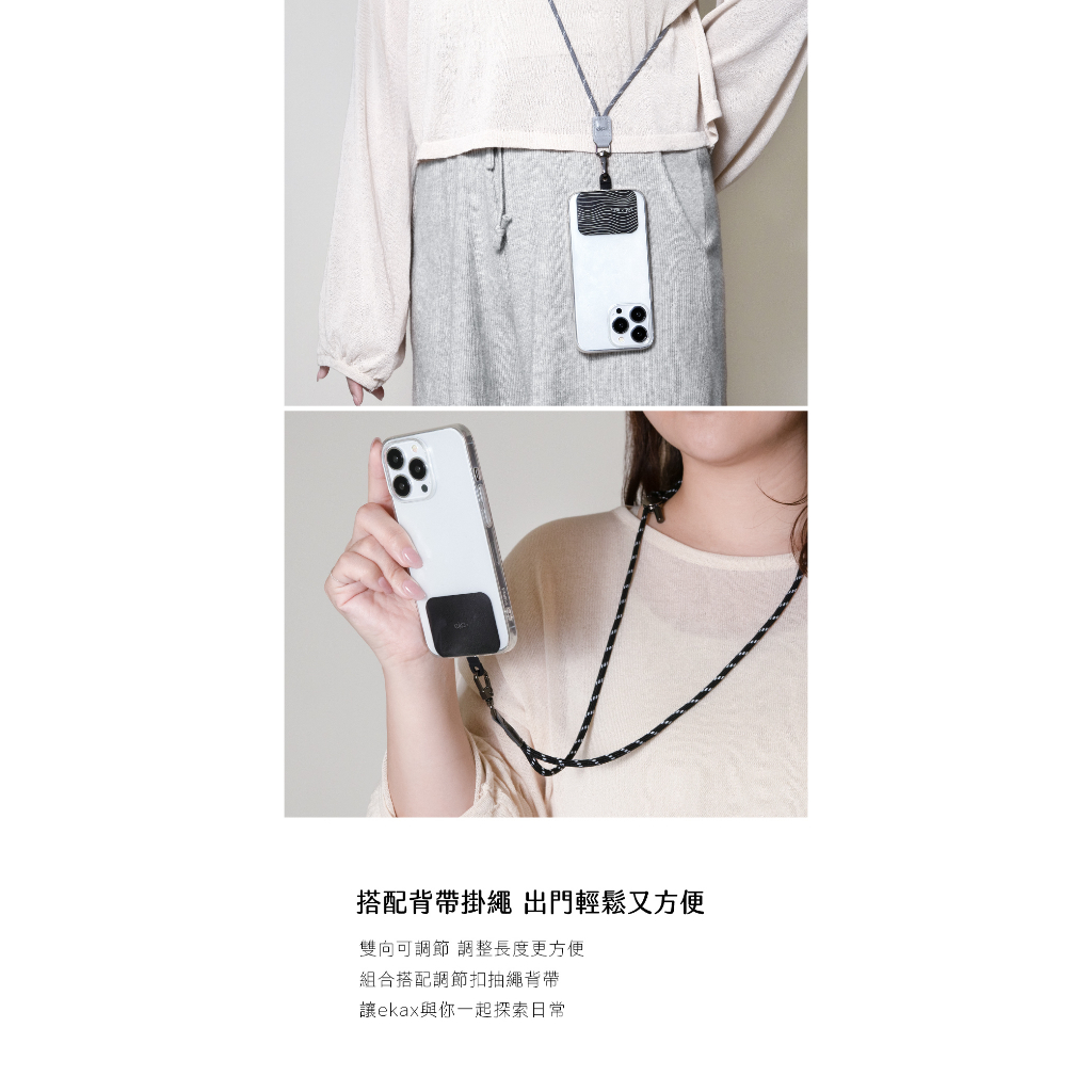 『ekax』通用夾片Pro組合(通用手機掛繩夾片+調節扣抽繩背帶) 四色任選 / 抗撕裂夾片 / 單鉤 / 調節扣Lost in space透白+織紋橡木|Lost in space黑+織紋霧灰|Logo透白+織紋粉杏|Logo黑+織紋深黑Phone Straps & Keychainsjiouu 設計樂生活