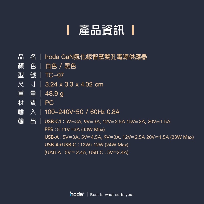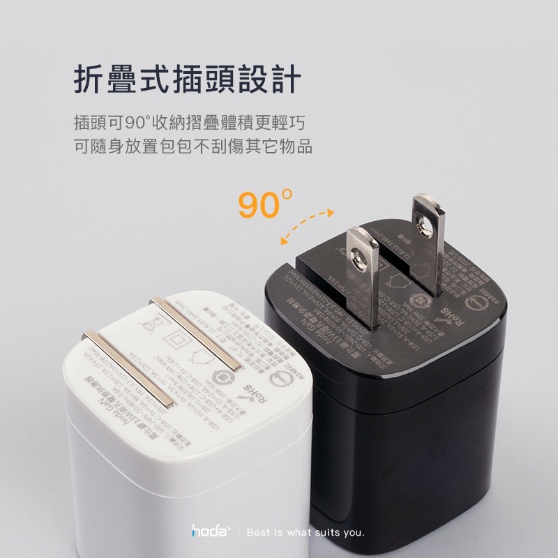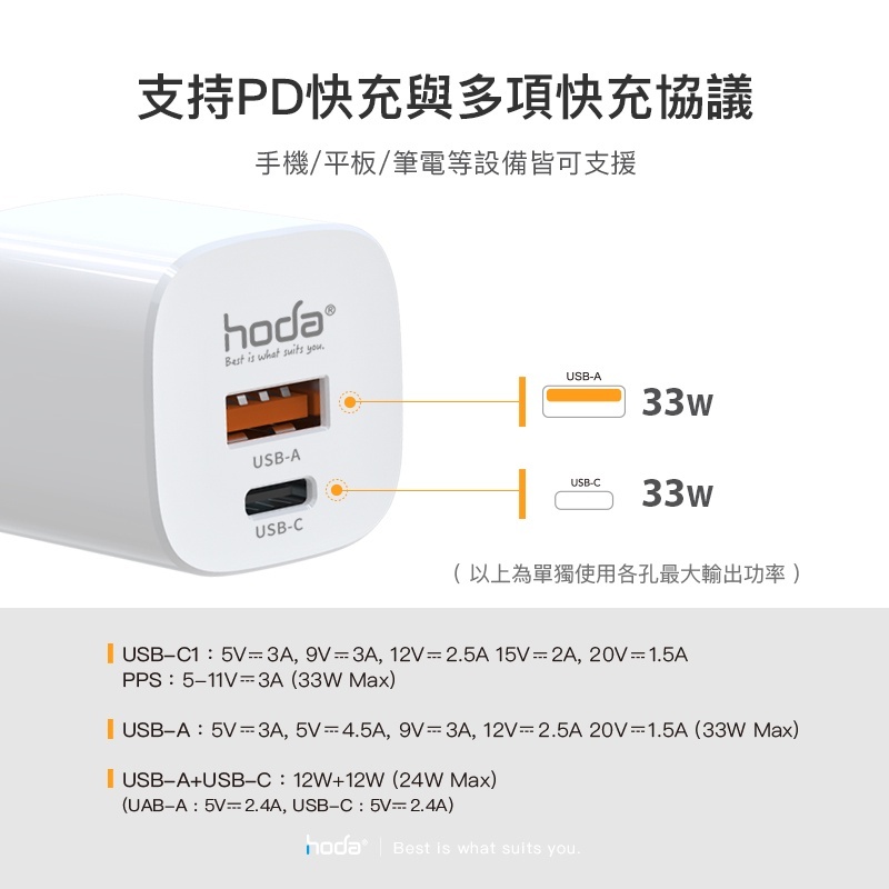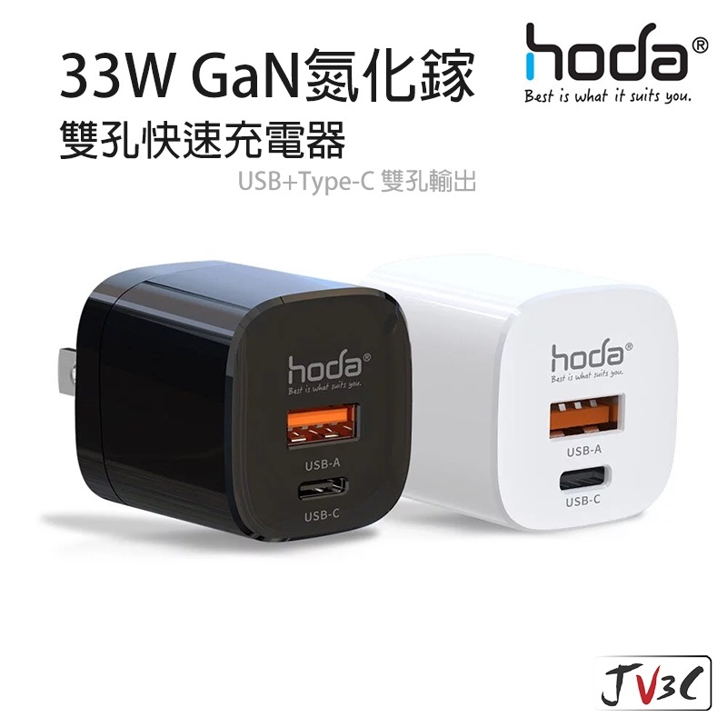 hoda 33W GaN氮化鎵 極速智能充電器 快速充電器 充電頭 充電器 快充頭 PD QC BSMI認證 插頭黑色|白色Cables, Chargers & ConvertersJV3C商城