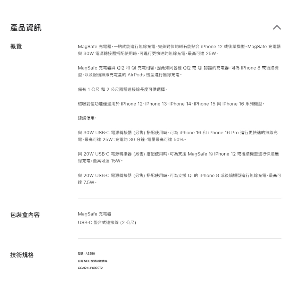 蘋果 Apple MagSafe 充電器 iPhone 16/15 Pro Max 磁吸 充電線 支援 Qi2 25W20W USB-C 電源轉接器|USB to Lightning-1M|C to Lightning-1M|C to Lightning-2M|USB-C to C 編織線-1M|USB-C to C 編織線-2M|MagSafe充電器(新款25W)-1M|MagSafe充電器(新款25W)-2MCables, Chargers & ConvertersGS 3C 手機平板配件選品店