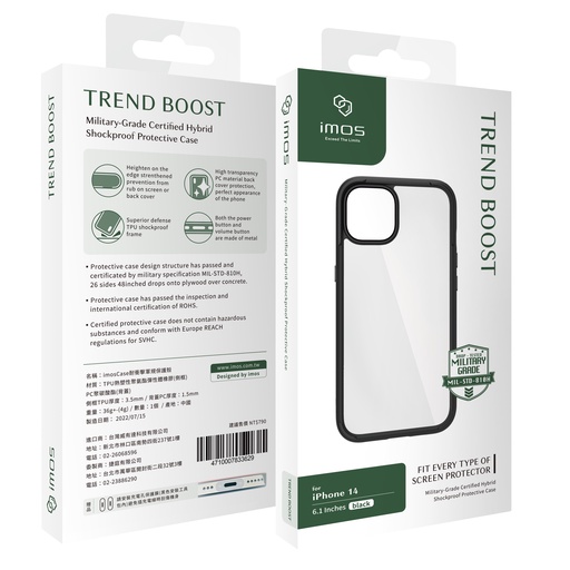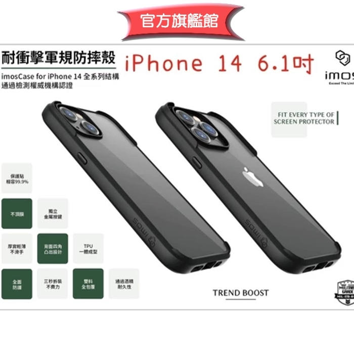 imos【官方旗艦館】 iPhone 14 6.1 耐衝擊軍規防震防摔保護殼 二鏡頭軍規殼手機殼防摔殼黑色 邊框黑色 背面透明|全透明Cases, Covers, & Skinsimos 官方旗艦館