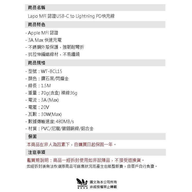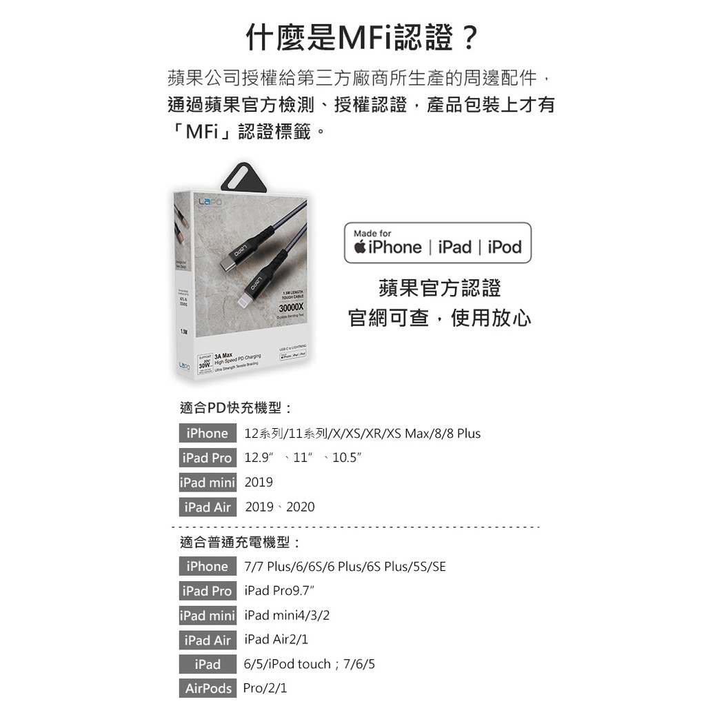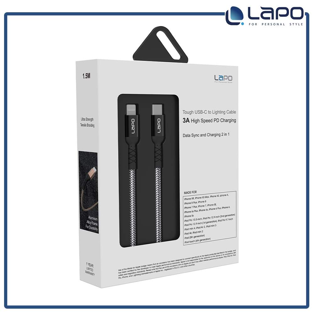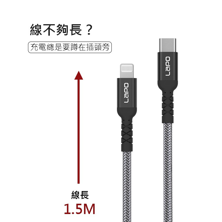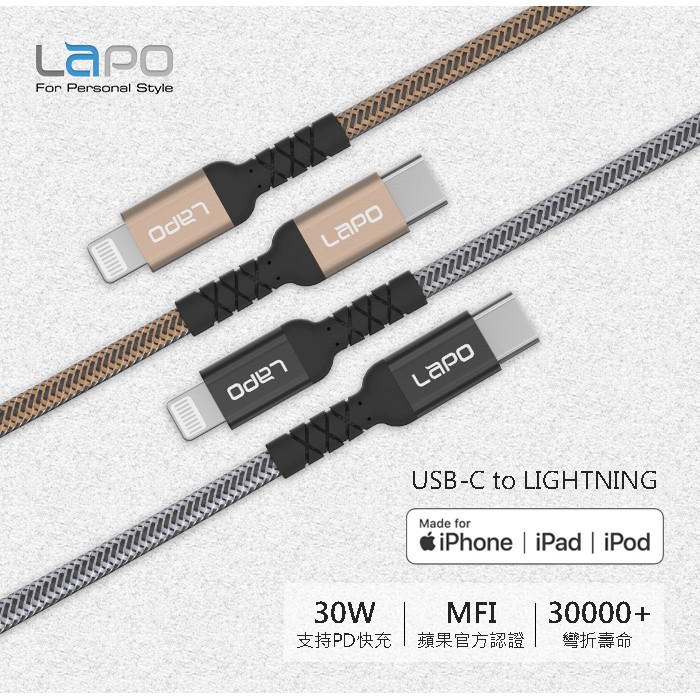 【LaPO】Type-C to Lightning PD MFI充電傳輸線 1.5M MFI認證 快充線黑色|金色Cables, Chargers & ConvertersLaPO 品牌旗艦店