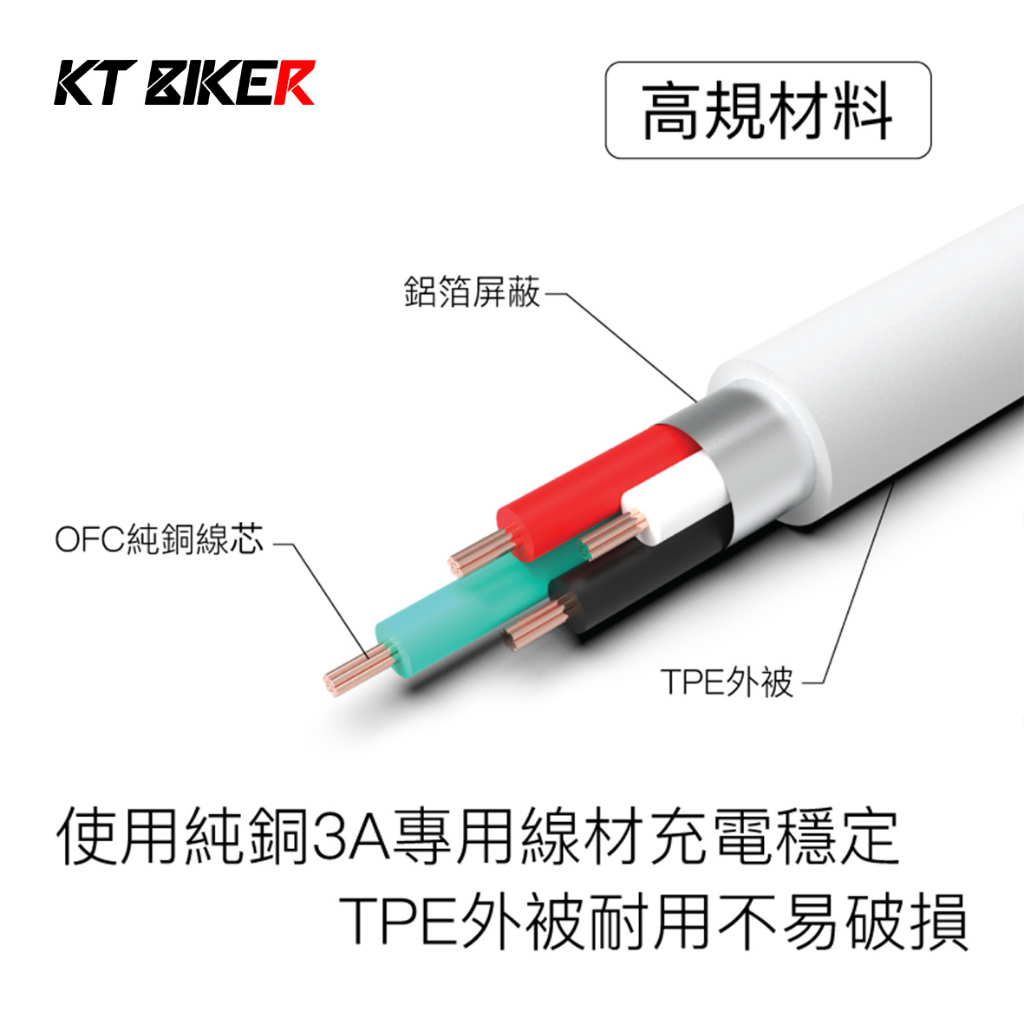 【KT BIKER】 Type-A Lightning 蘋果3A快充線 USB 傳輸線 iphone 充電線 台灣品牌50cm|100cm|USB車充|20cmCables, Chargers & ConvertersKT BIKER 專注車品