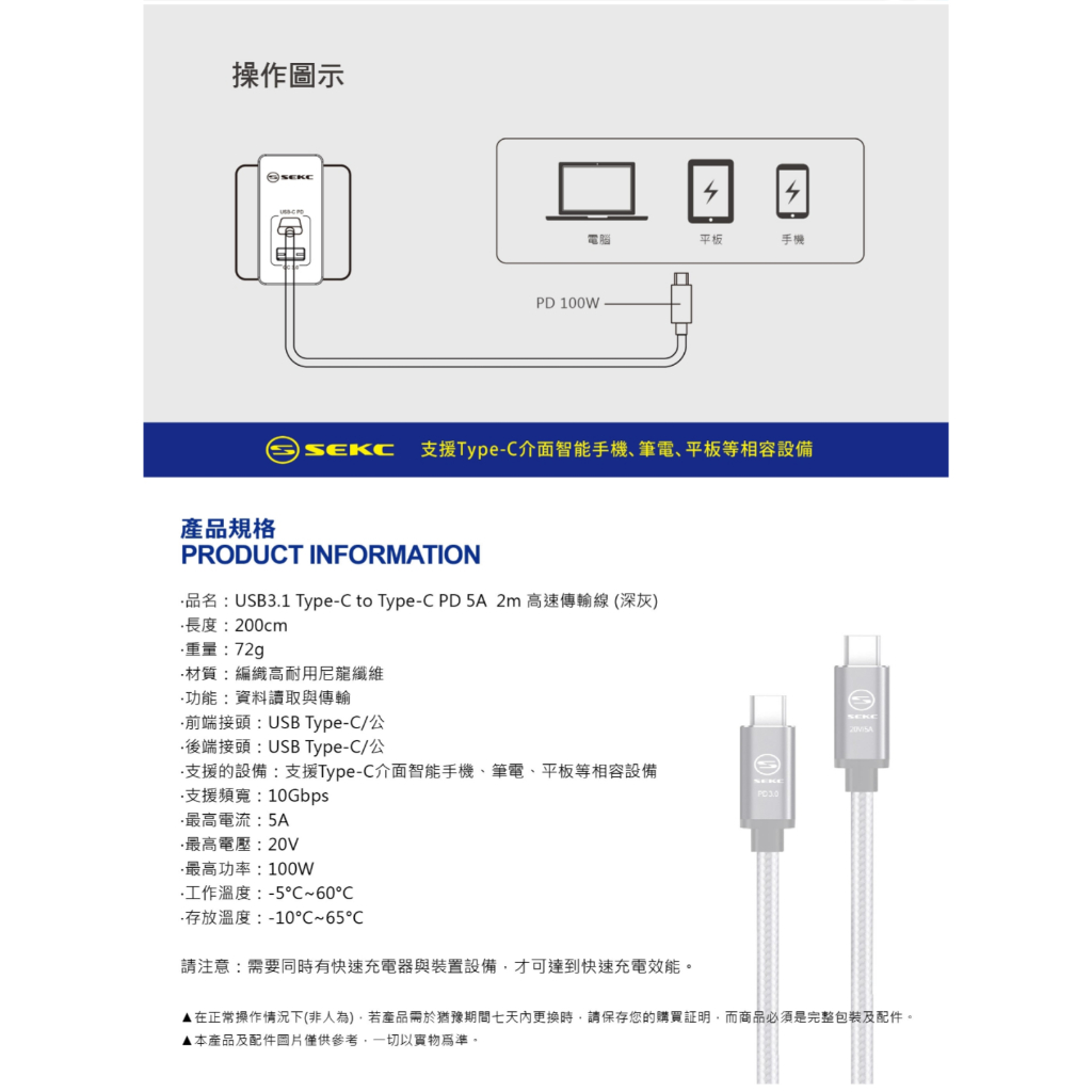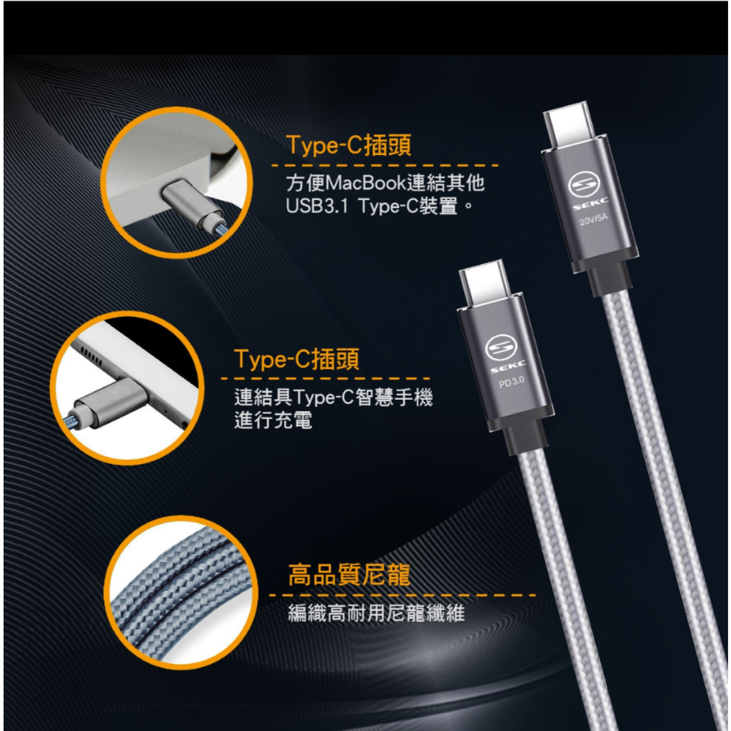 【SEKC】Type-C to Type-C 2m 100W USB 3.2 高速10Gbps傳輸線 mac充電傳輸線【SEKC】Type-C to Type-C 2m 100W USB 3.2 高速10Gbps傳輸線 mac充電傳輸線Cables, Chargers & ConvertersLycander官方旗艦店
