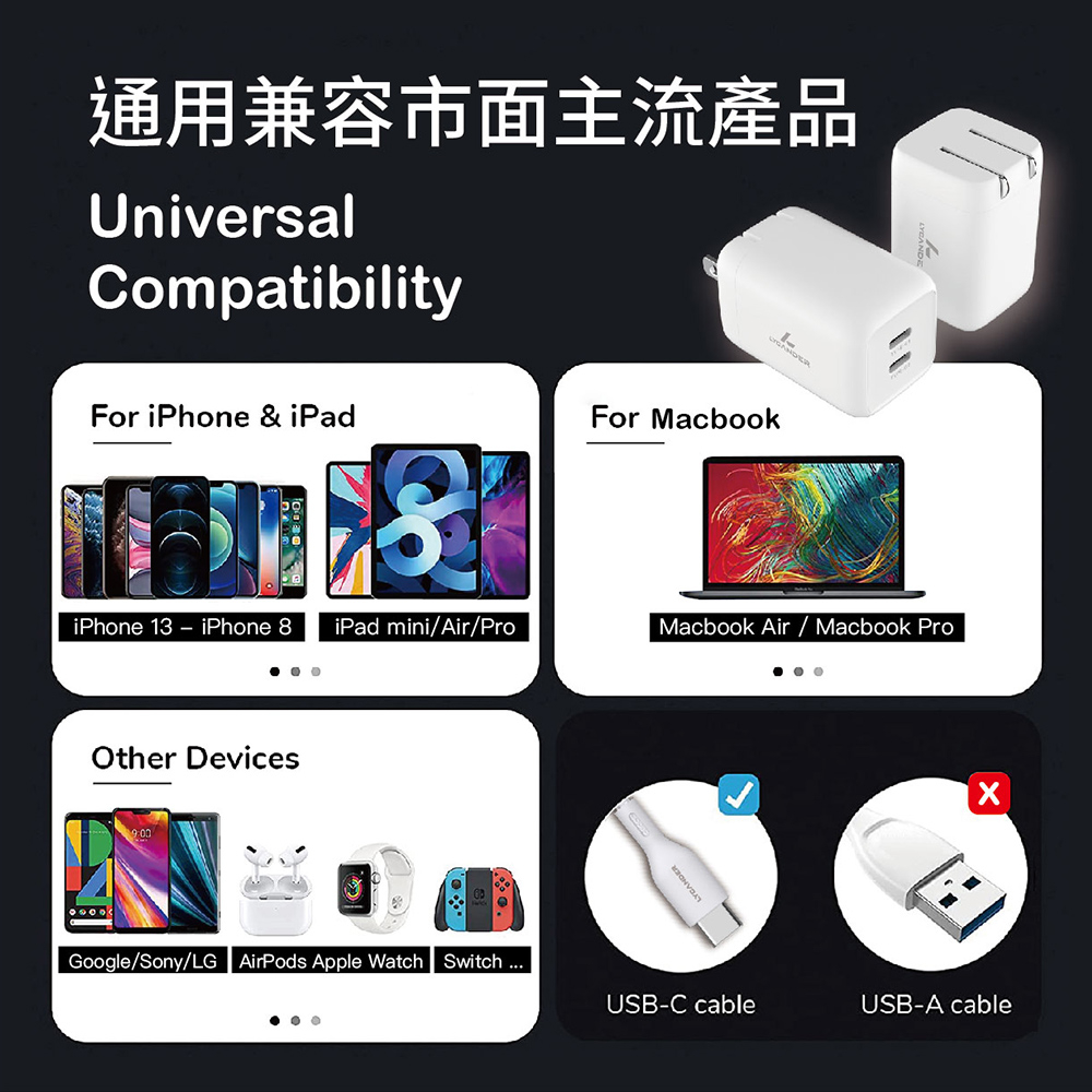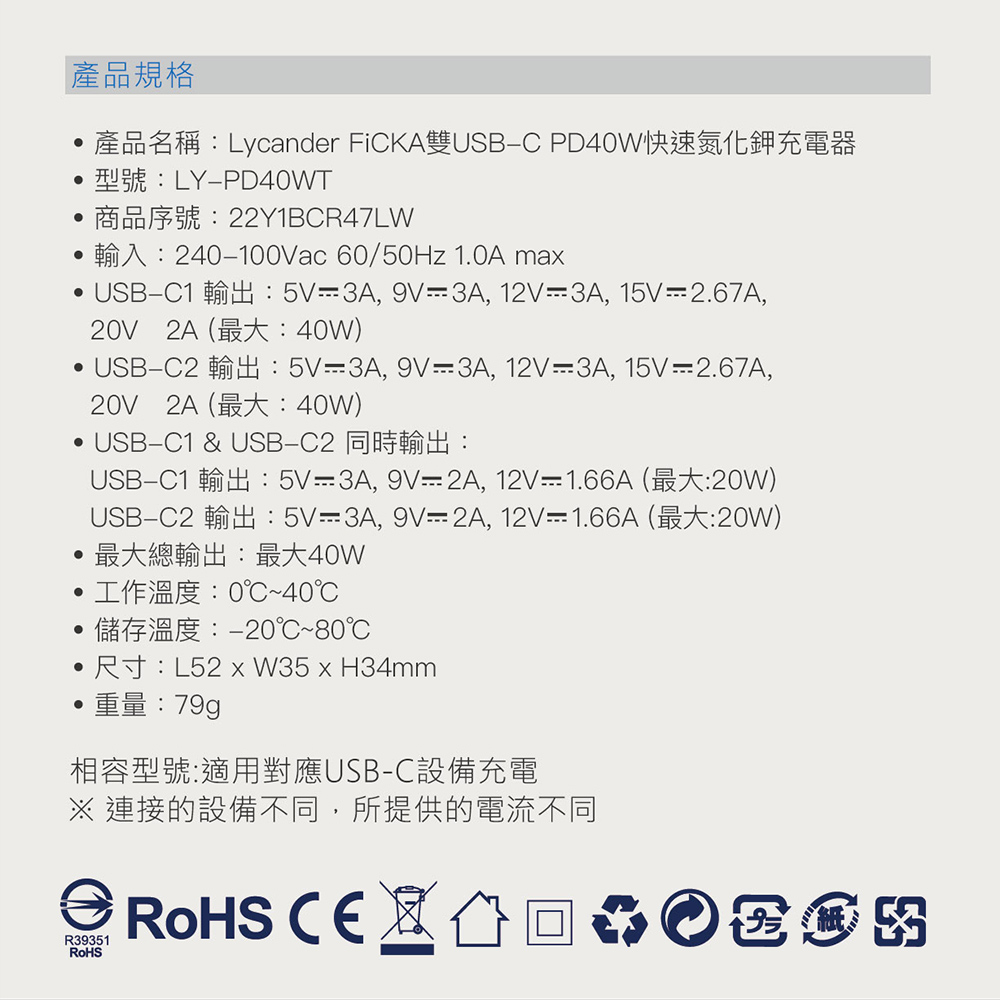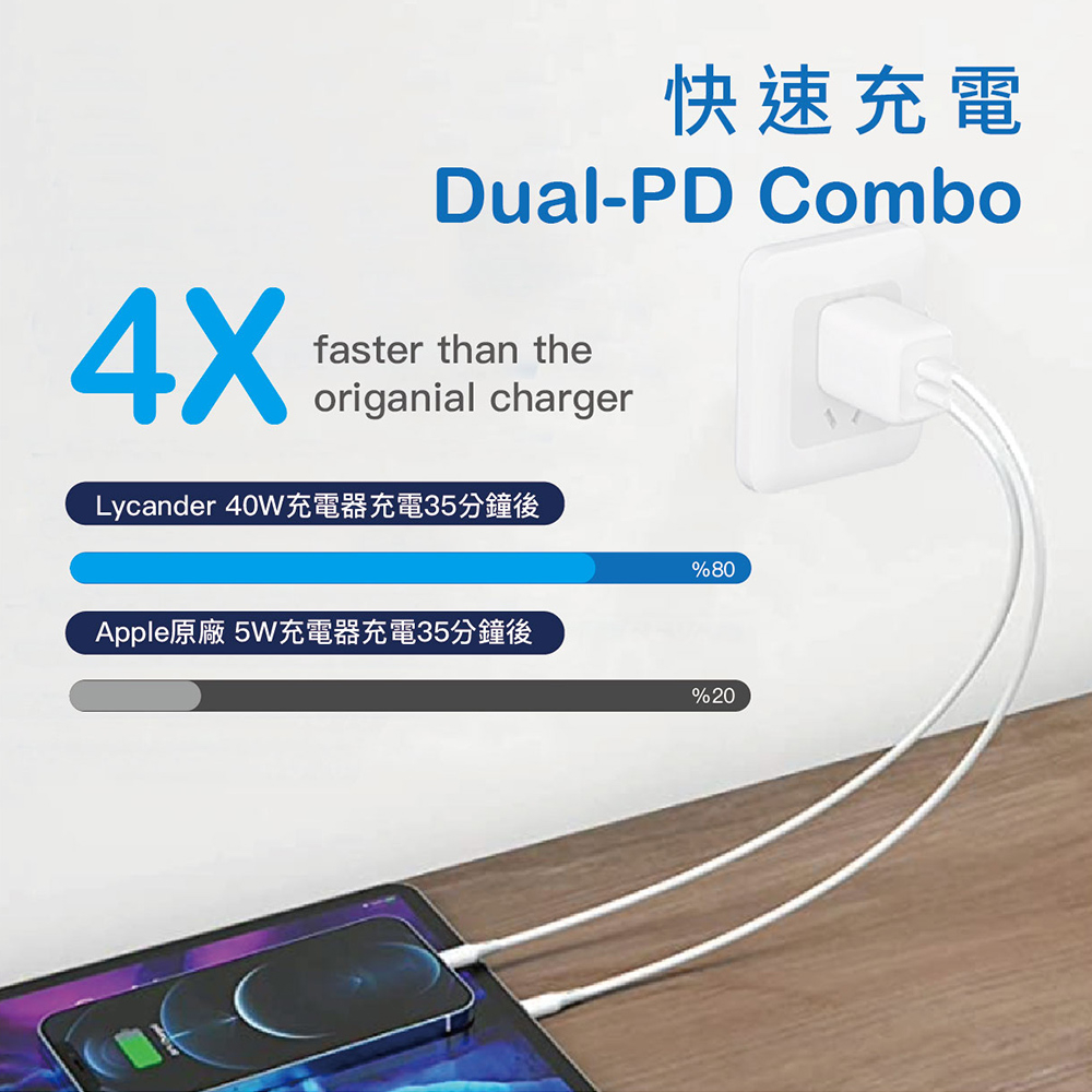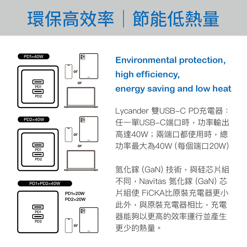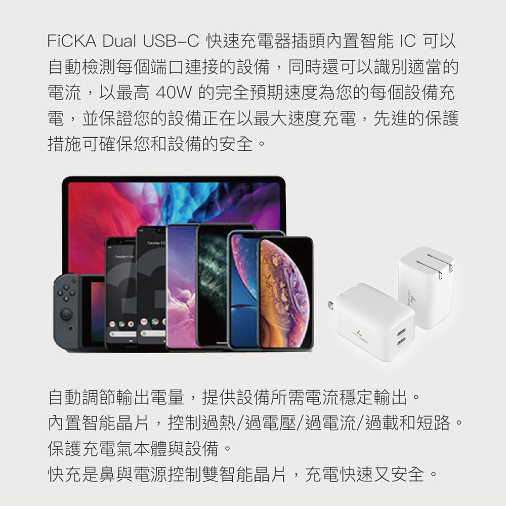 【Lycander】 FiCKA 雙 USB-C PD 20W/40W 快速氮化鉀充電器 迷你 PD快充PD 40W 快速氮化鉀充電器|PD 20W USB-C 高速充電器Cables, Chargers & ConvertersLycander官方旗艦店