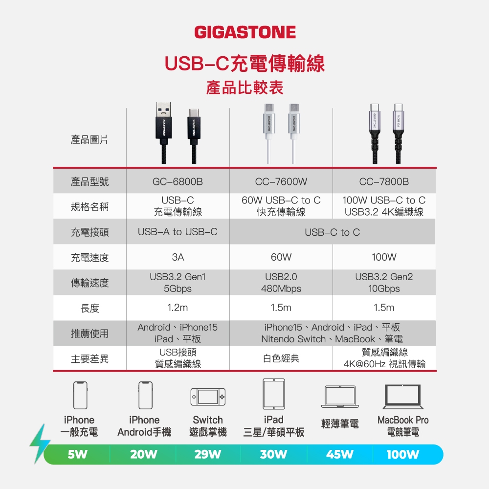 【GIGASTONE】100W 5A Type-C to C 4K USB3.2編織傳輸線|iPhone16快充充電線單入|雙入【活動-加200多1條】Cables, Chargers & ConvertersGIGASTONE 立達國際官方旗艦店