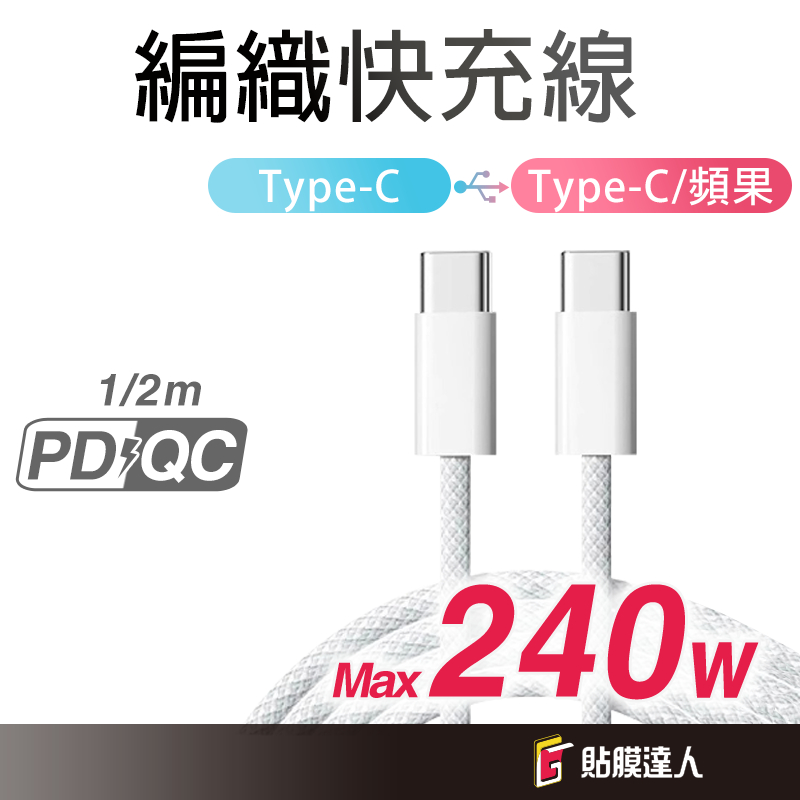 編織快充線 pd快充 適用 iPhone15 14 13 i12 i11 Pro Max 蘋果 oppo htc 充電線TypeC to TypeC(60w),1M(100cm)|TypeC to TypeC(60w),2M(200cm)|TypeC to TypeC(240w),1M(100cm)|TypeC to TypeC(240w),2M(200cm)|TypeC to 頻果,1M(100cm)|TypeC to 頻果,2M(200cm)Cables, Chargers & ConvertersGLASS貼膜達人-3C配件專賣|保護貼、手機殼、辦公室3C