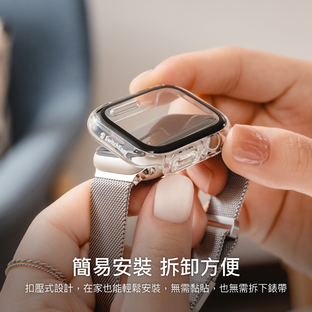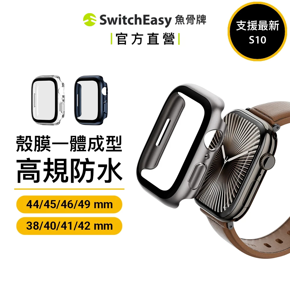 • SwitchEasy 魚骨牌 Apple Watch 10/9/8/7 Hybrid WP 9H 鋼化玻璃防水保護殼