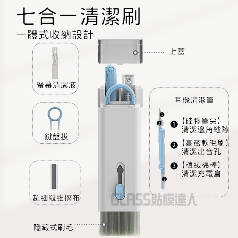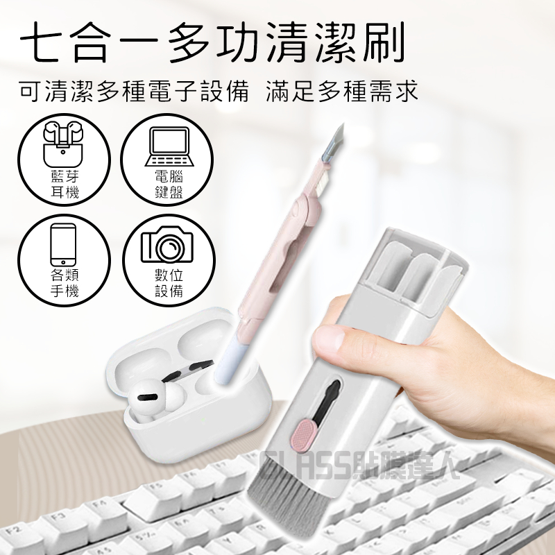 鍵盤清潔刷 多功能耳機清潔筆 七合一清潔組 耳機清潔工具 適用 螢幕 相機 筆電 手機 清潔毛刷 AirPods 耳機七合一鍵盤清潔-粉|七合一鍵盤清潔-藍OthersGLASS貼膜達人-3C配件專賣|保護貼、手機殼、辦公室3C