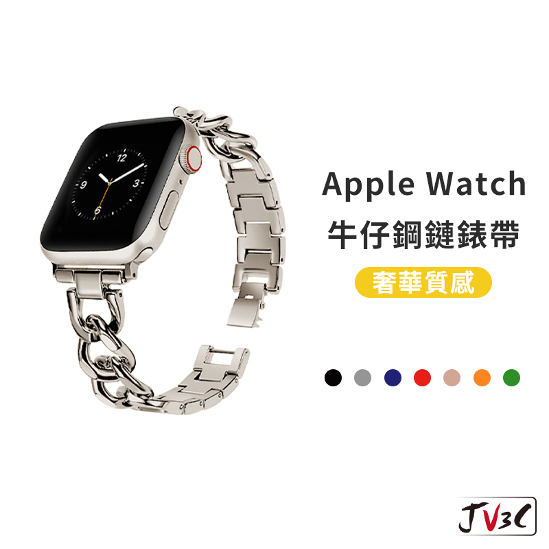 • 牛仔鋼鏈 不鏽鋼錶帶 適用Apple Watch錶帶 9 8 7 SE 6 5 4 38 40 42 44 41 45