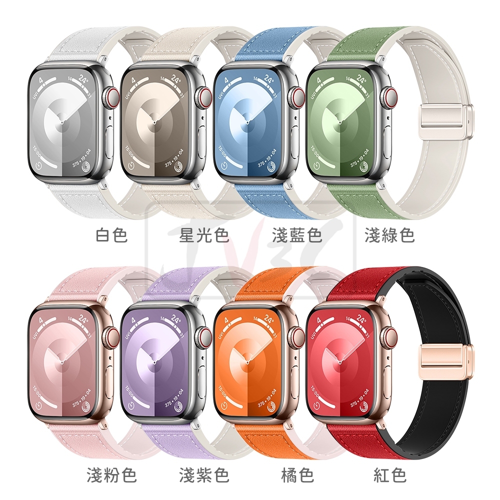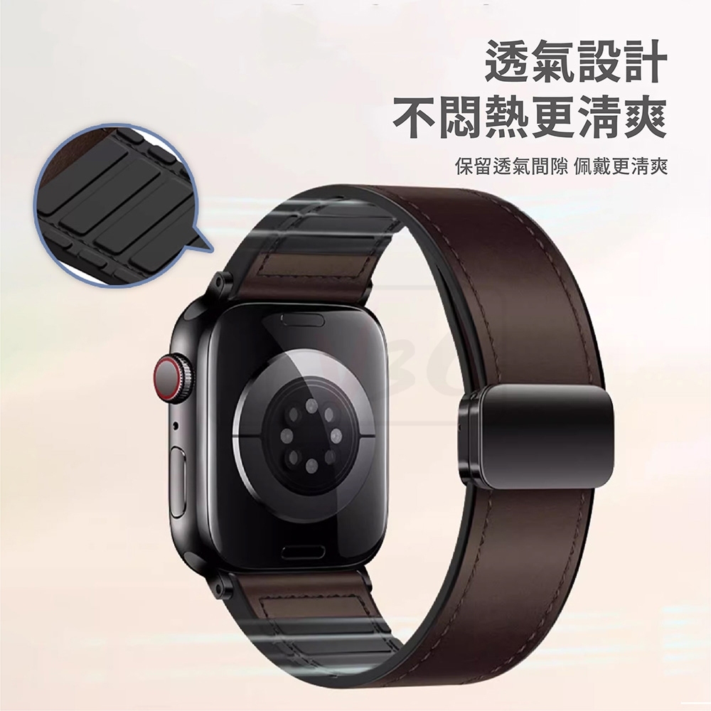 磁吸扣舒適皮革錶帶 適用 Apple watch 錶帶 10 9 8 7 SE 6 45 46 40 42 44 41