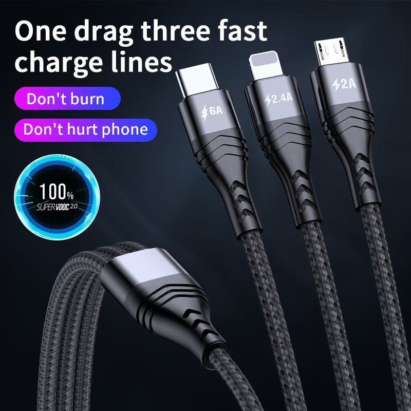 6A超級快充線 編織尼龍數據線 適用iphone蘋果OPPO小米VIVO三星ASUS手機充電線HTC閃充線一拖三2米現貨一拖三超級快充數據線【1.2米】|一拖三超級快充數據線【2米】Cables, Chargers & ConvertersLEIKEI 利基通訊旗艦店