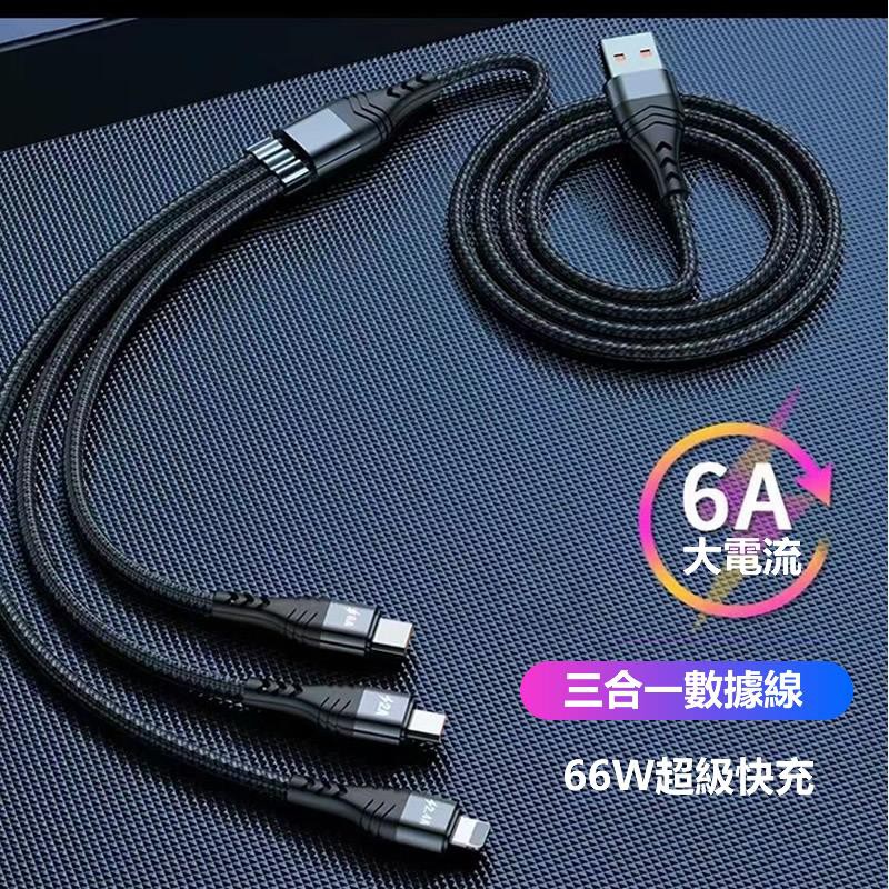 • 6A超級快充線 編織尼龍數據線 適用iphone蘋果OPPO小米VIVO三星ASUS手機充電線HTC閃充線一拖三2米現貨