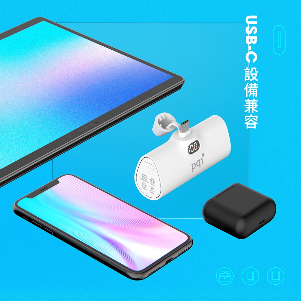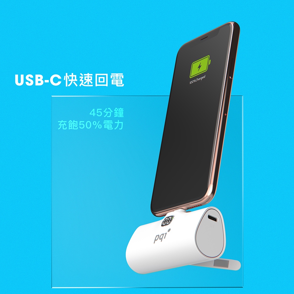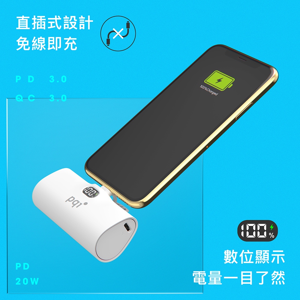 • 【PQI 勁永】免線直插口袋行動電源 20W 快充 5000mAh 電量顯示 自帶腳架 電流過充過放保護 PD05