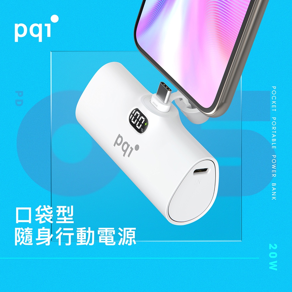 【PQI 勁永】免線直插口袋行動電源 20W 快充 5000mAh 電量顯示 自帶腳架 電流過充過放保護 PD05白色|粉色|紫色Powerbanks & BatteriesFUNY台灣官方旗艦店