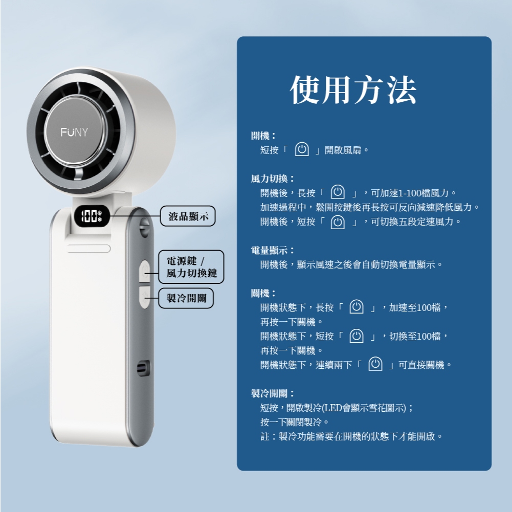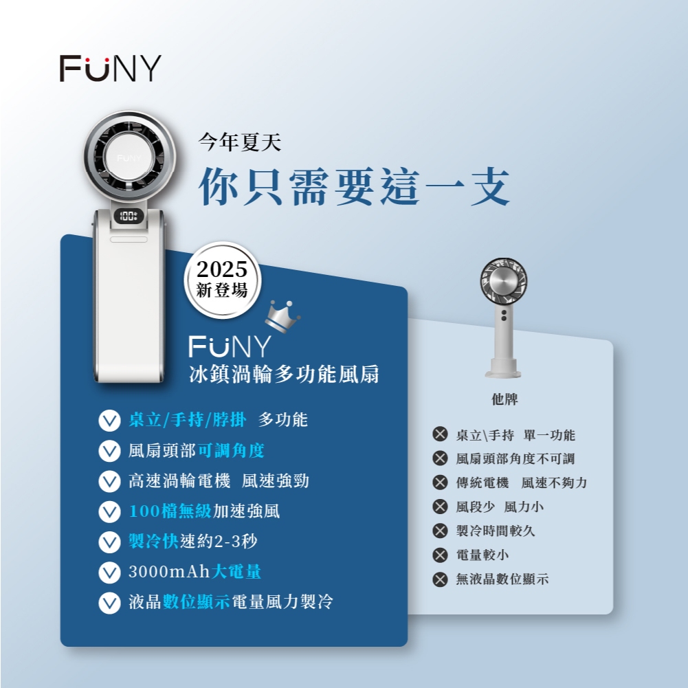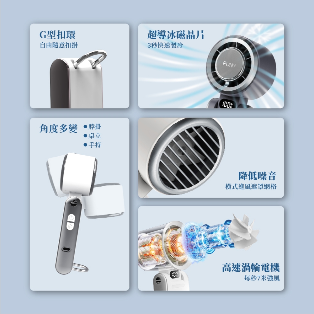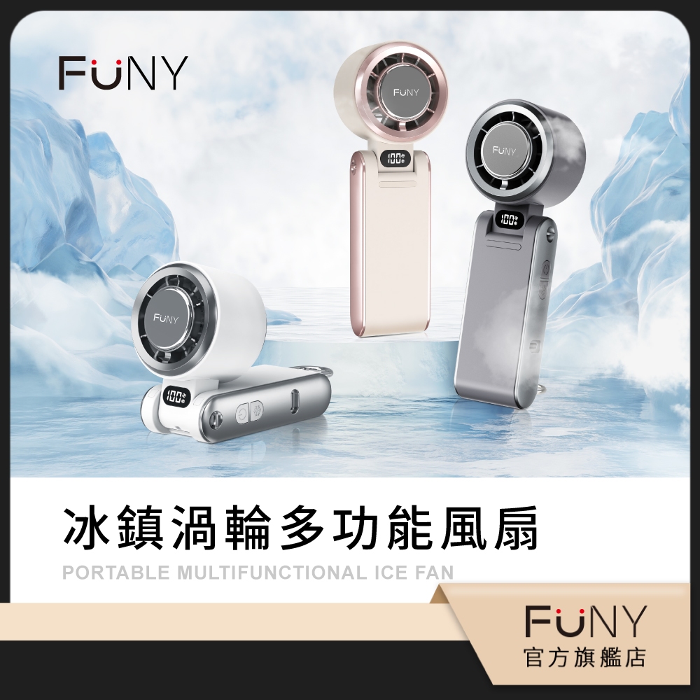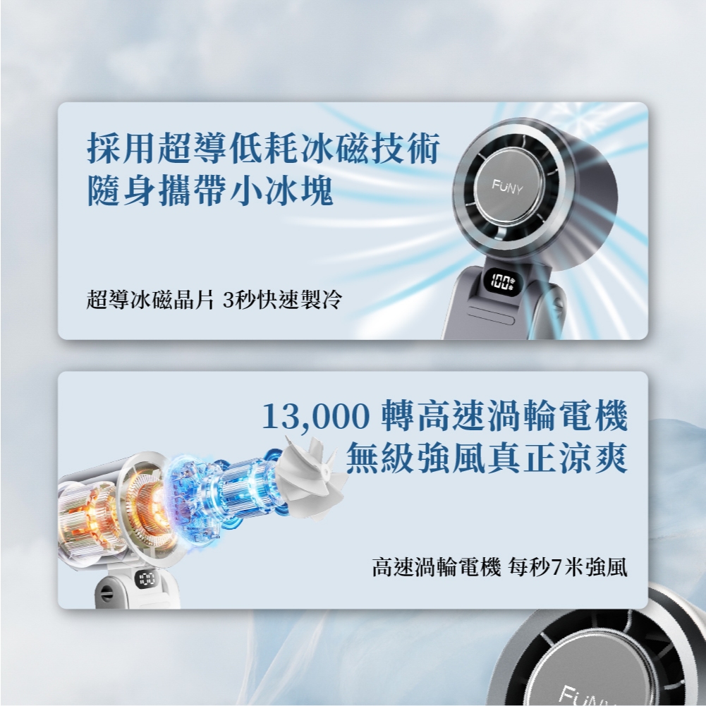 • 官方直營 熱銷破萬【FUNY】2025新品 冰鎮渦輪多功能風扇 手持風扇 脖掛風扇 3秒製冷 100檔無級強風 可折角