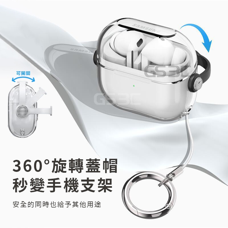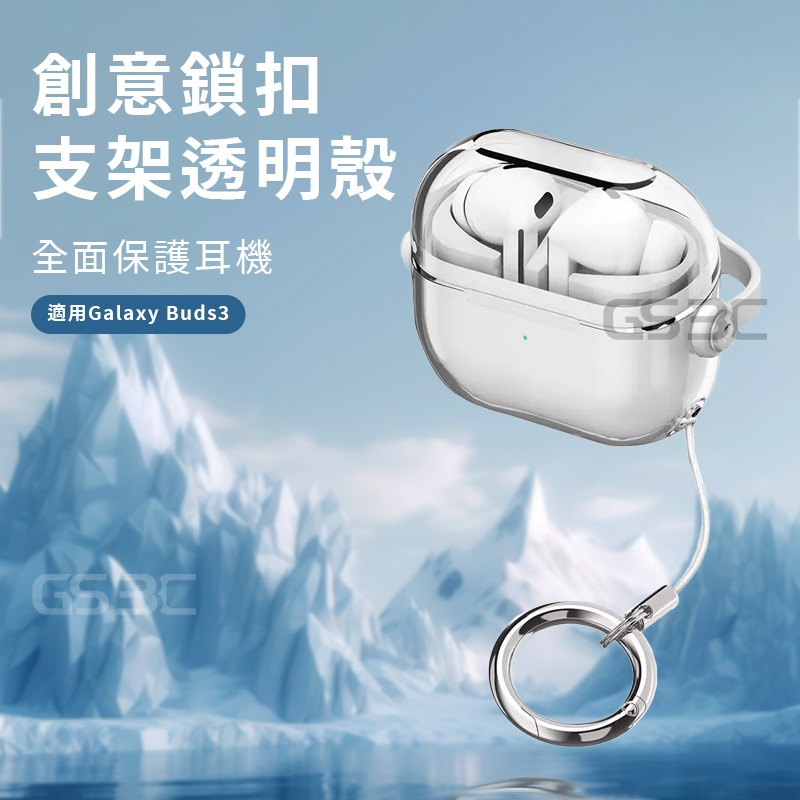 三星 Galaxy Buds 3 Pro 防丟失 保護殼 耳機殼 透明殼 保護套 防摔殼 鎖扣設計 附扣環 手機支架