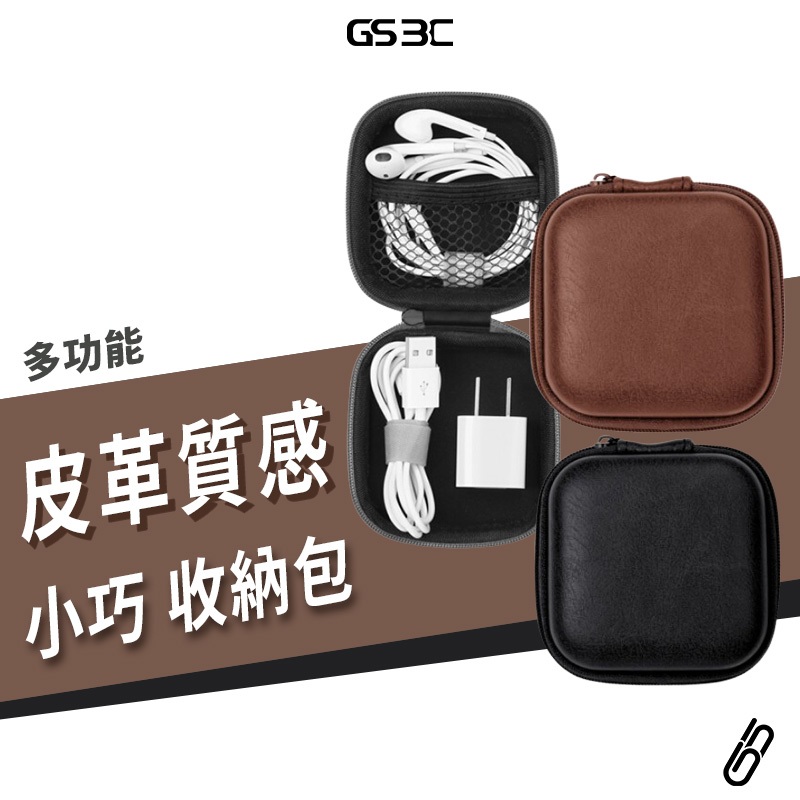 耳機收納包 皮革材質 耳機包 充電線 充電頭 充電器 耳機 零錢 3C配件 小飾品 收納包 收納盒 收納袋 防撞 防摔黑色|棕色OthersGS 3C 手機平板配件選品店