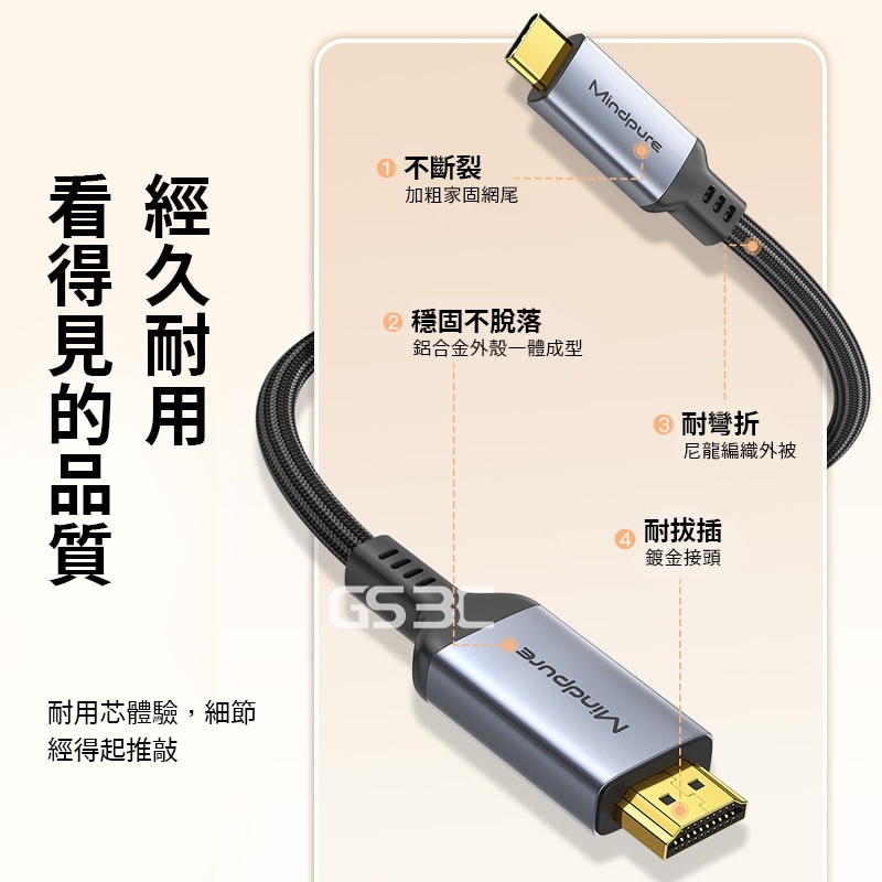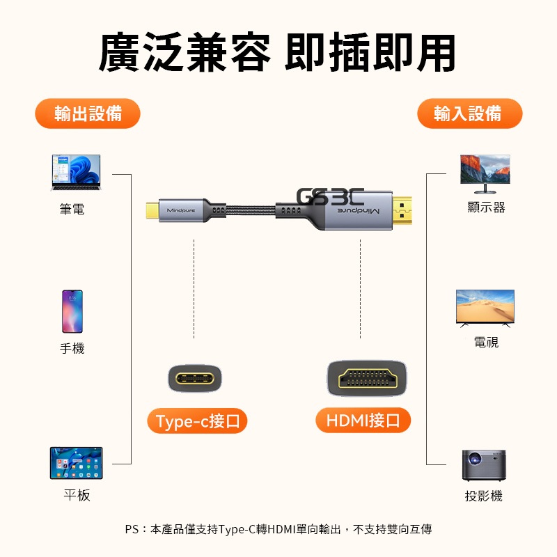 影音 影像 傳輸線 Type C 轉 HDMI 支援 4K iPhone16 iPad 筆電 hdmi線 USB-C1.8mCasting DevicesGS 3C 手機平板配件選品店