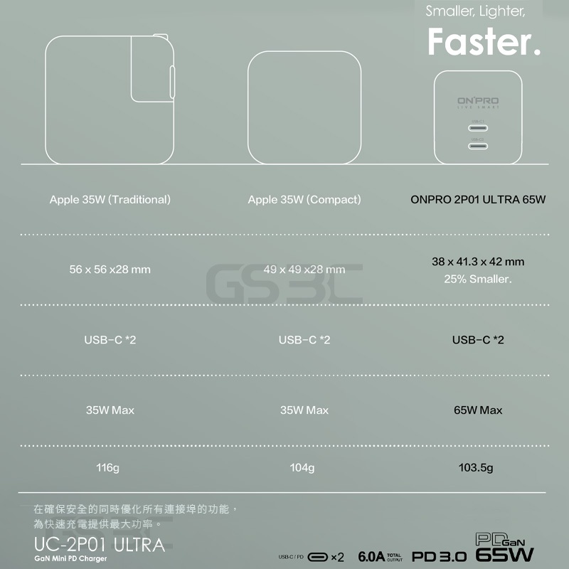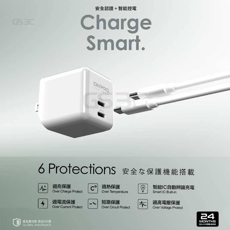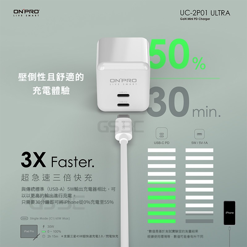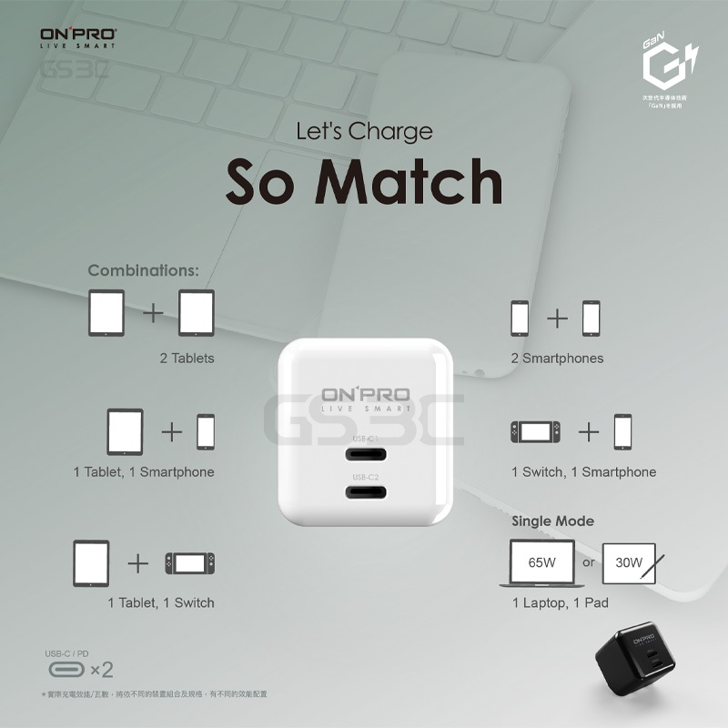 onpro 氮化鎵 GaN PD 65W iPhone 16 Pro Max/Plus 雙孔 超級快充 充電器 充電頭白色+100cm充電線CtoC|黑色+100cm充電線CtoC|黑色+100cm充電線CtoL|白色+100cm充電線CtoLCables, Chargers & ConvertersGS 3C 手機平板配件選品店