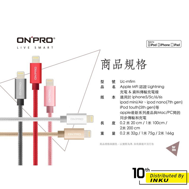 ONPRO UC-MFIM 金屬質感 快充 充電線 Lightning USB 傳輸線 MFi 1M 2M1M-無限黑|1M-太空灰|1M-玫瑰金|1M-土豪金|1M-可樂紅Cables, Chargers & Convertersibits手機配件 官方旗艦館