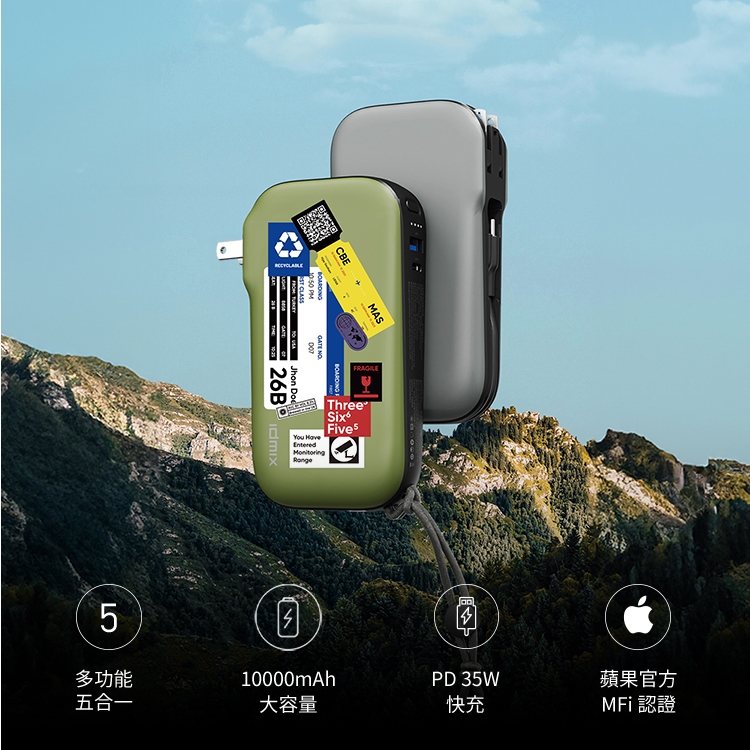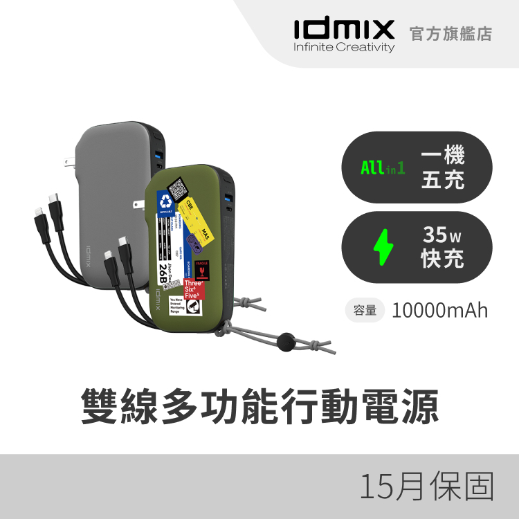 IDMIX MR CHARGER 10000 CH07 Pro 35W 雙線多功能五合一行動電源【快充升級款】CH07 Pro 個性綠|【快充升級款】CH07 Pro 自由灰Powerbanks & Batteriesidmix 官方旗艦店