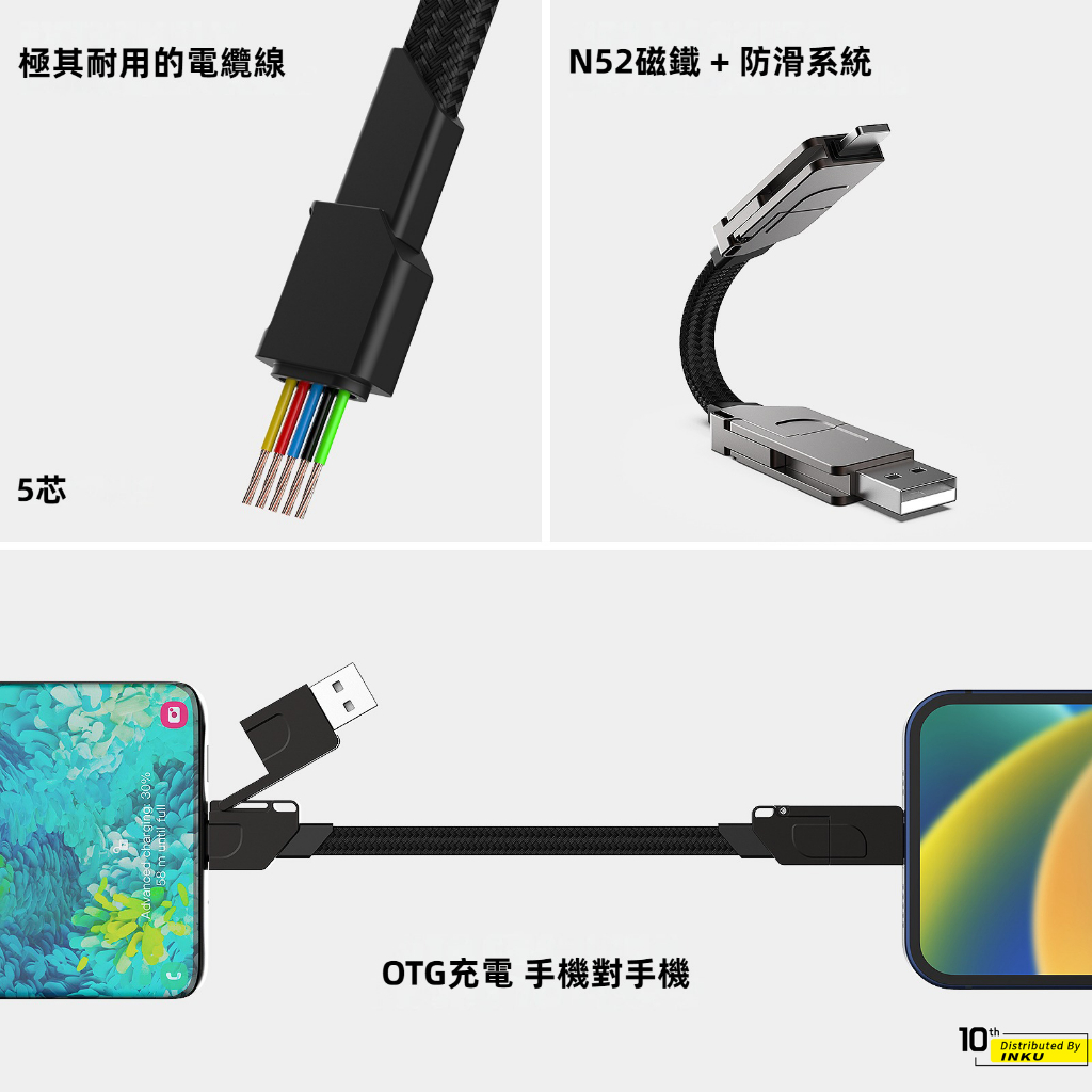 鋅合金 六合一 瑞士軍刀線 充電線 手機線 傳輸線 雙TypeC 蘋果線 數據線 快充 鑰匙扣 PD 安卓 0.15M