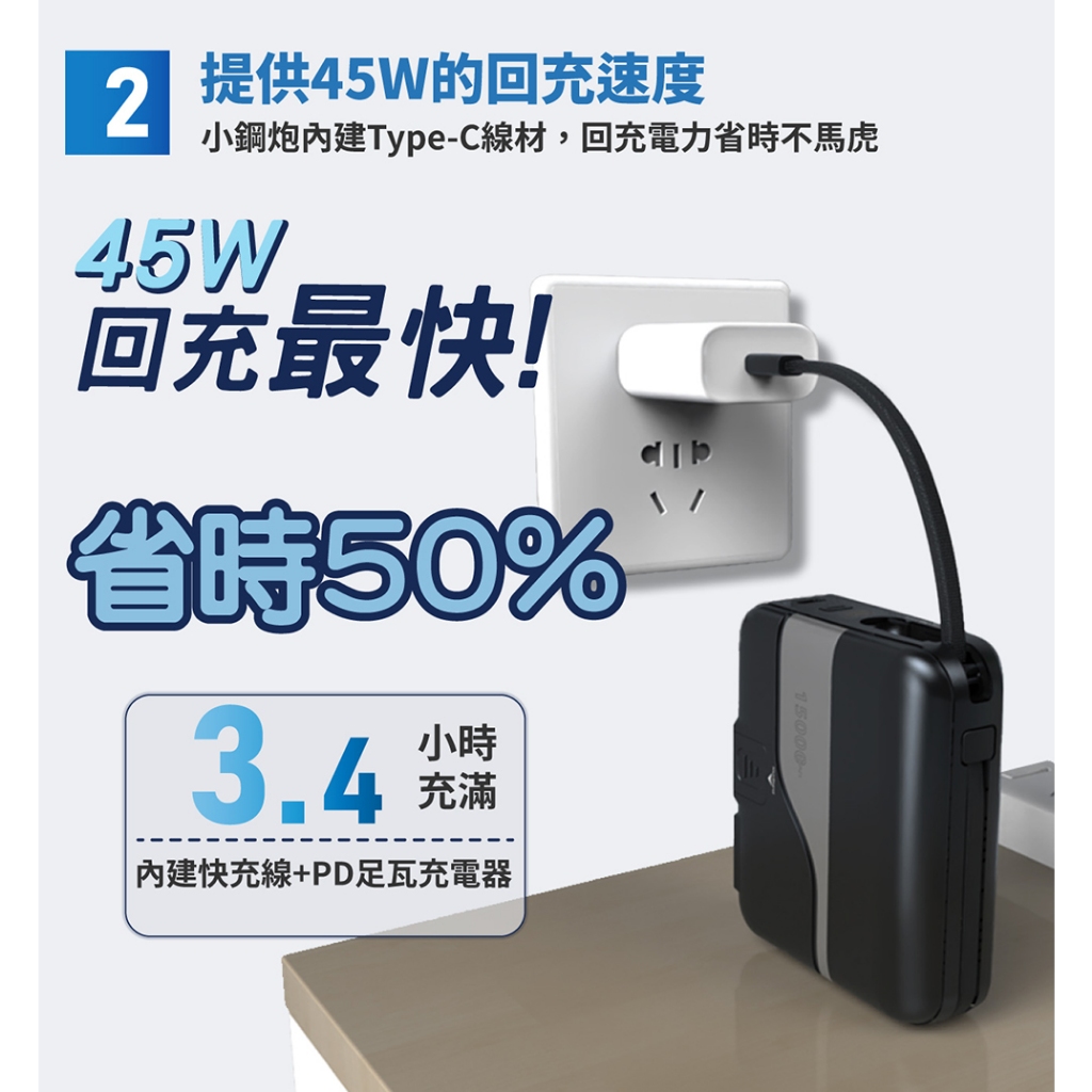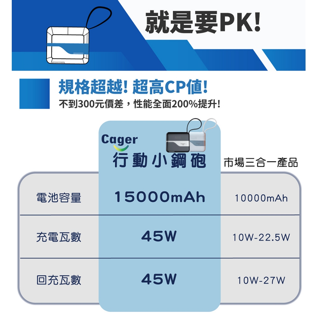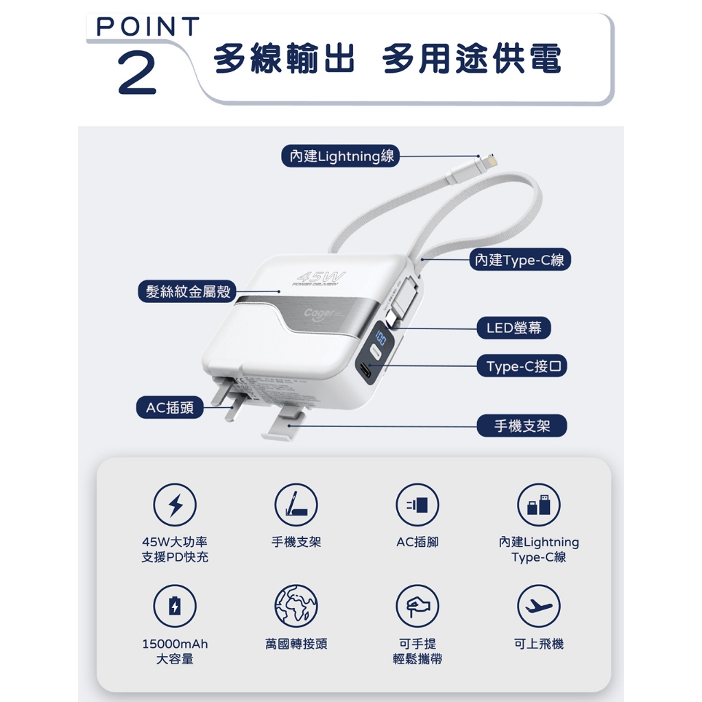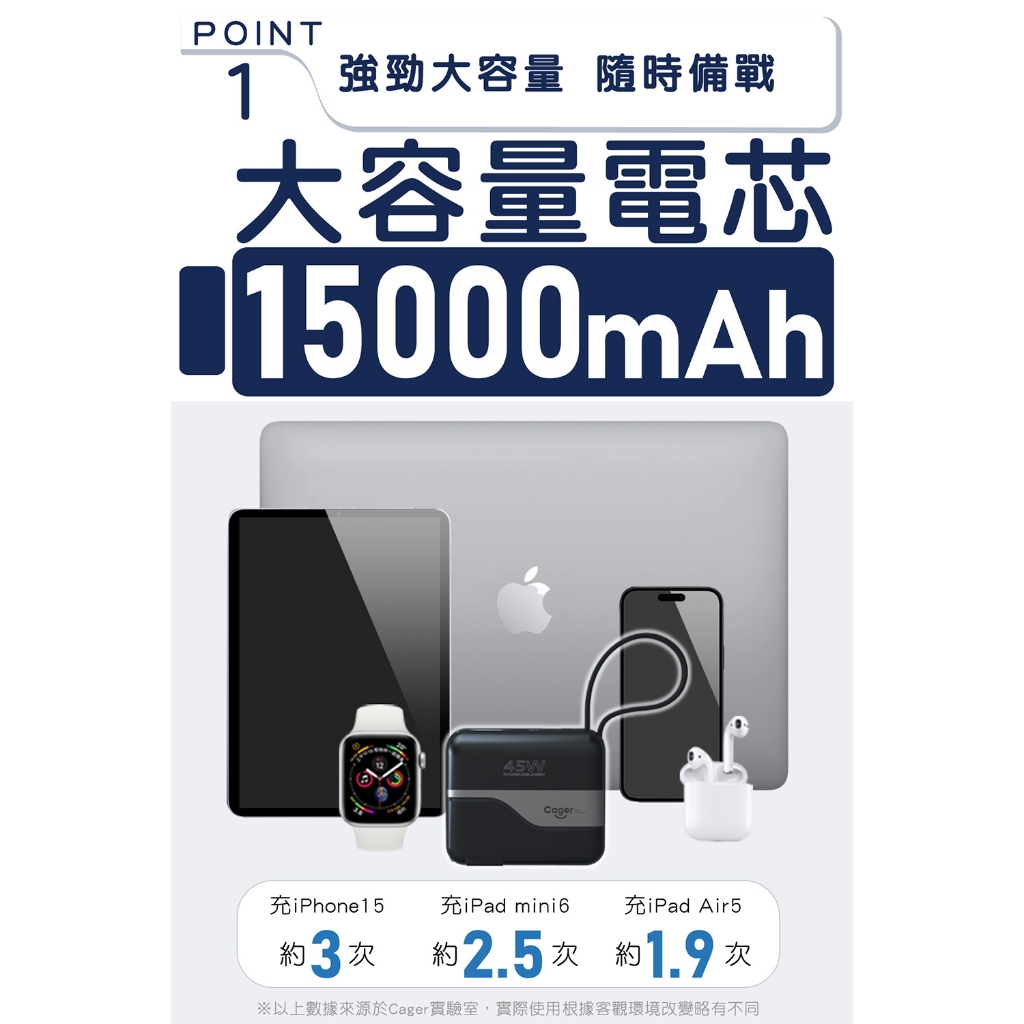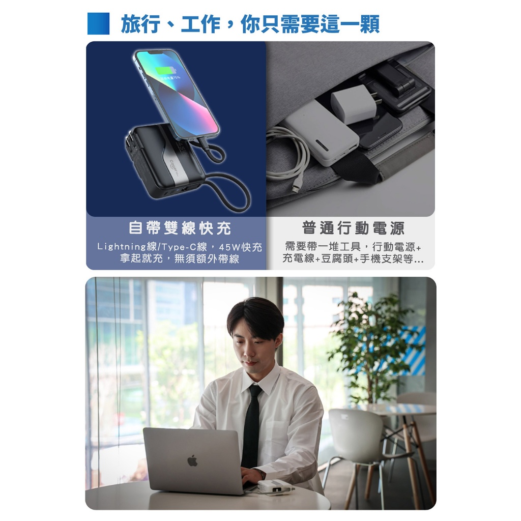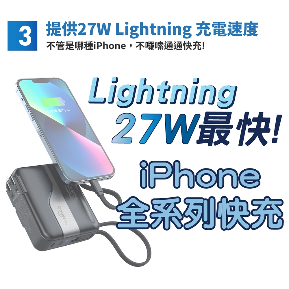 Cager PD151W 三合一 45W PD 快充行動電源內斂黑+轉接頭|活力白+轉接頭|內斂黑|活力白Powerbanks & BatteriesIBOOMING時尚精品配件