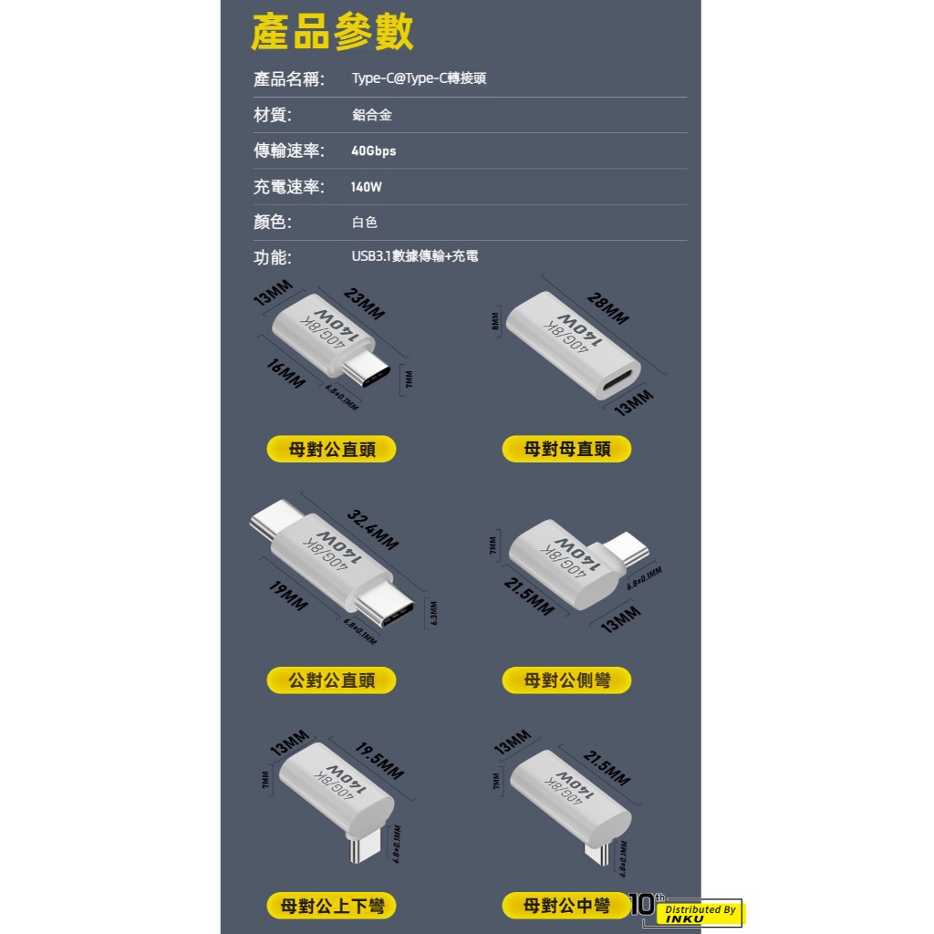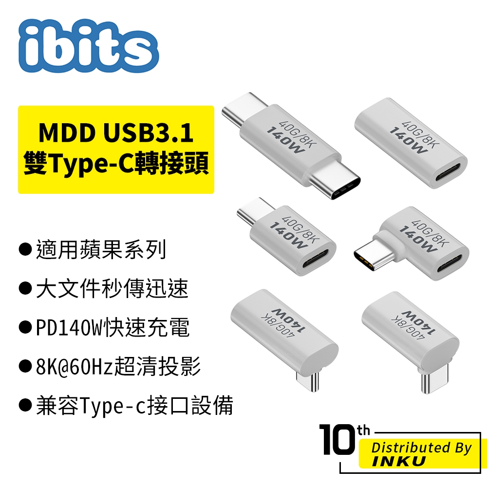 ibits MDD USB3.1 雙Type-C轉接頭 PD140W快充 40Gbps傳輸 支援雷電4直頭(C公轉C公)|直頭(C母轉C母)|直頭(C母轉C公)|側彎(C母轉C公)|中彎(C母轉C公)|上下彎(C母轉C公)Cables, Chargers & Convertersibits手機配件 官方旗艦館