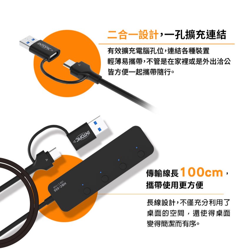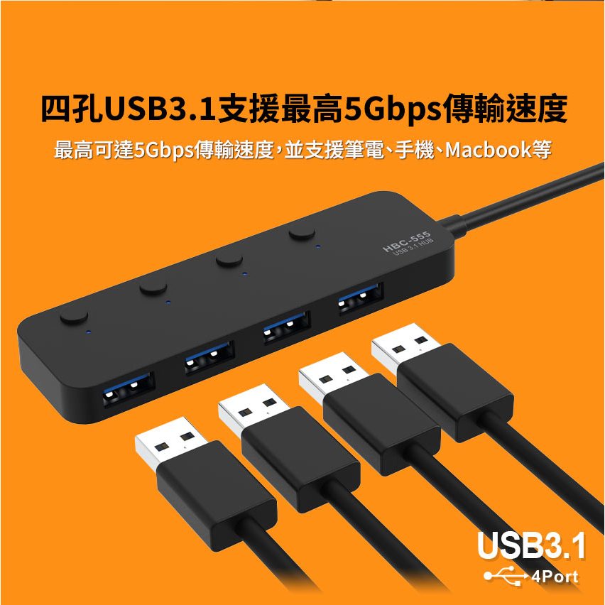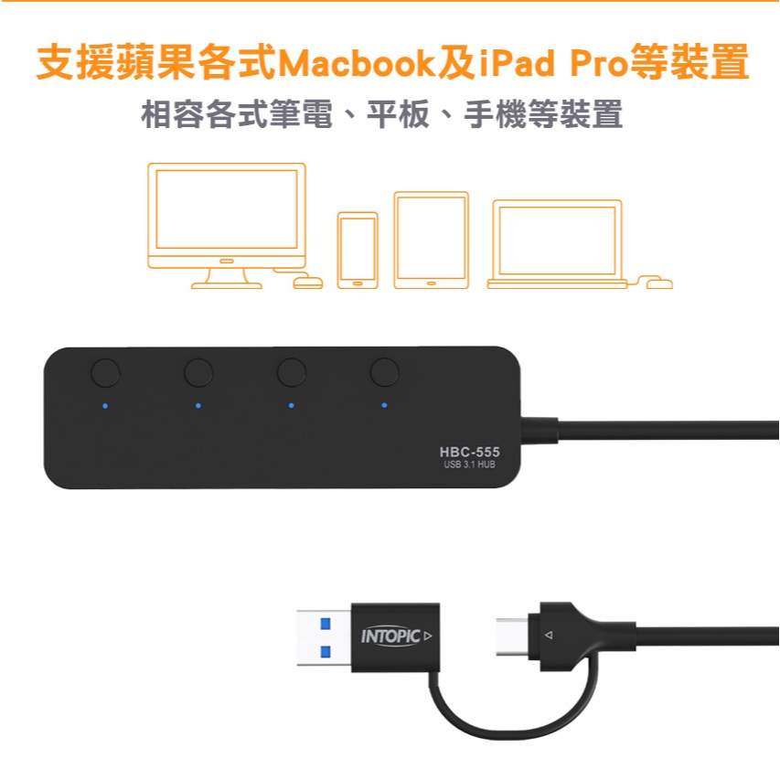 【Intopic】HBC-555 4埠 USB3.1 高速 集線器 USB HUB 四孔獨立開關 擴充
